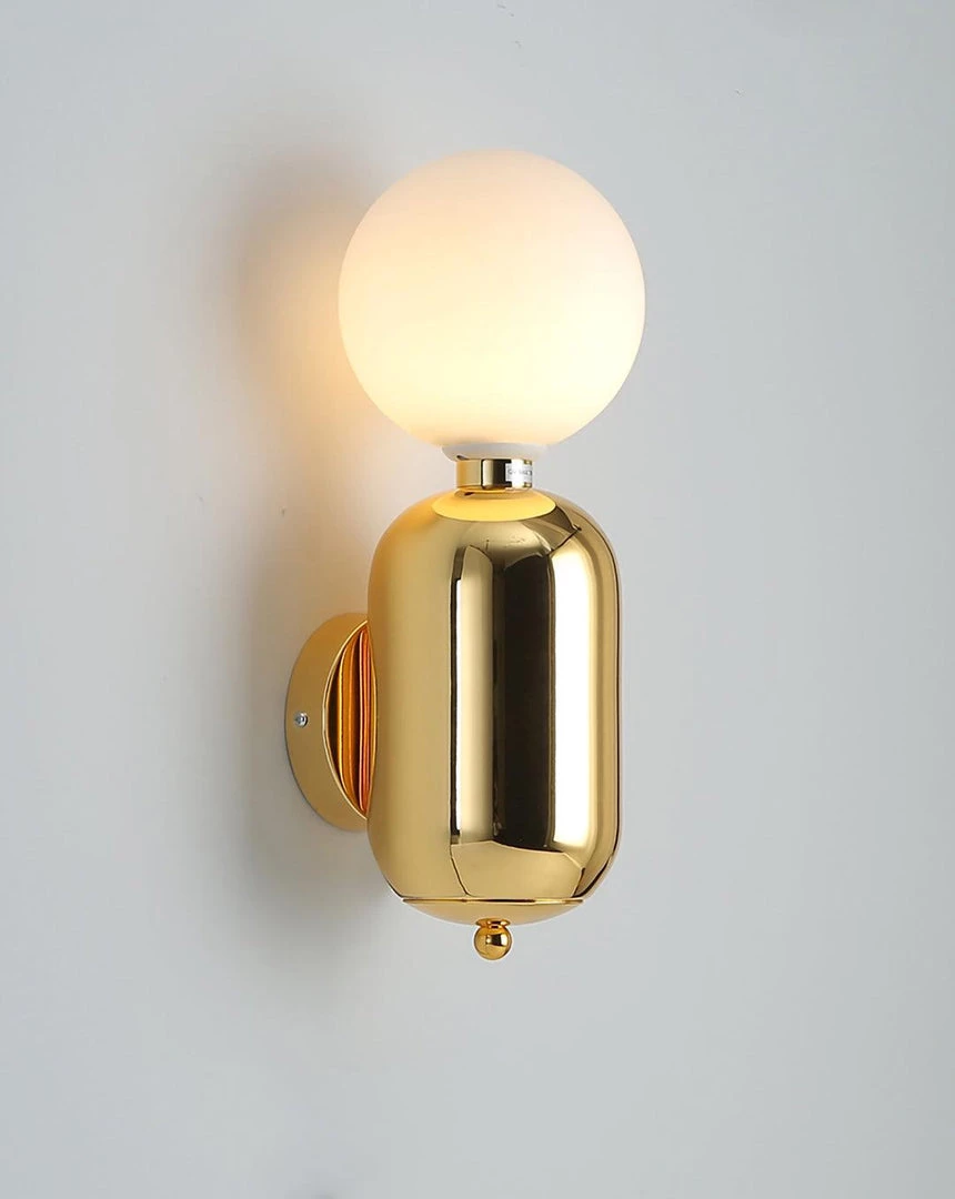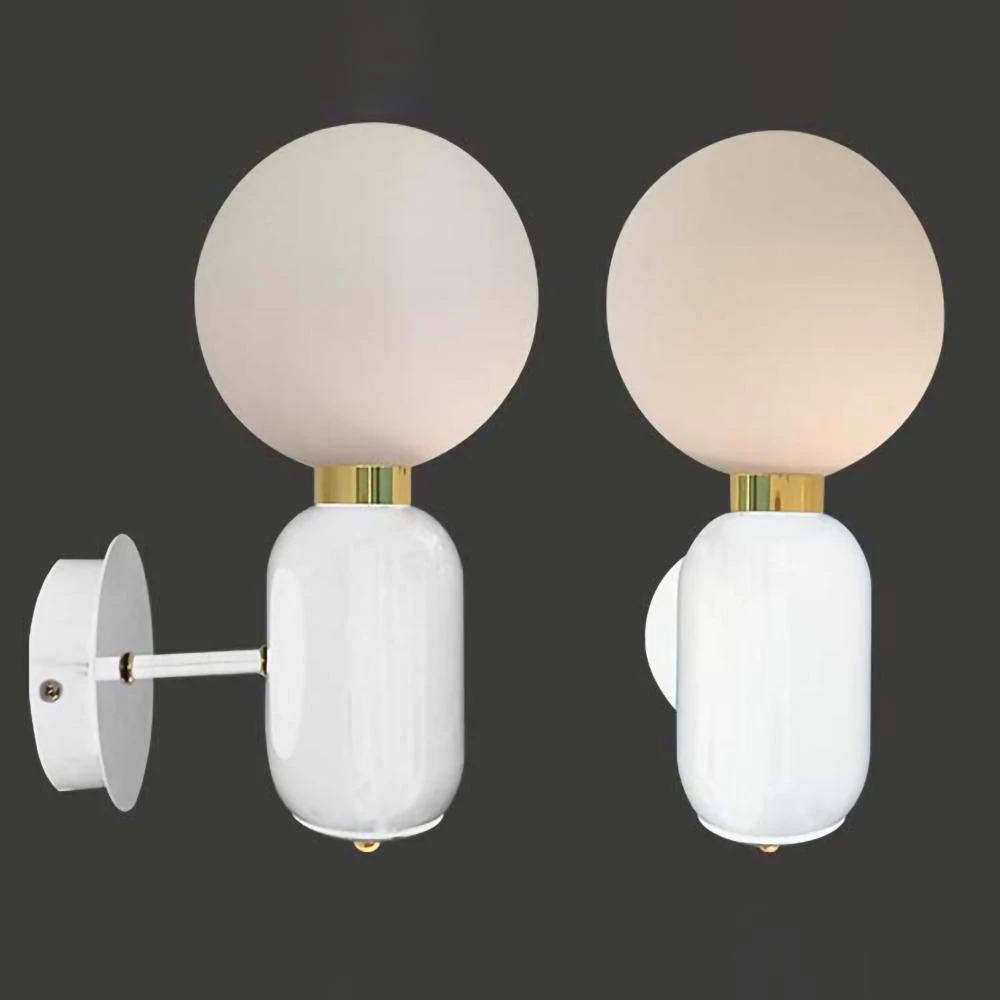 The aballs wall lamp is made up of a blown glass diffuser and gold, platinum, copper, white or black melat base. The result produces a warm ambient light and can be used in a domestic environment as well as in contract projects.
