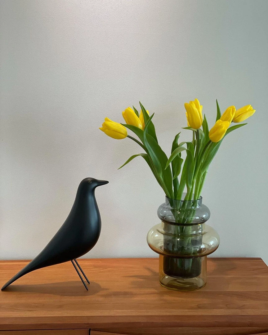 Charles and Ray Eames augmented the interior “collage” of the Eames House with numerous objects brought back from their extensive travels. The figure of a black wooden bird – evidently one of their most prized objects of American folk art – has stood in the center of their living room for over fifty years. Also seen as an accessory in many of the Eames’ photographs, the bird figure was from the Appalachian mountain region of the eastern United States. Based on the original artifact and in cooperation with the Eames family, Vitra is now producing the first series of this figure.