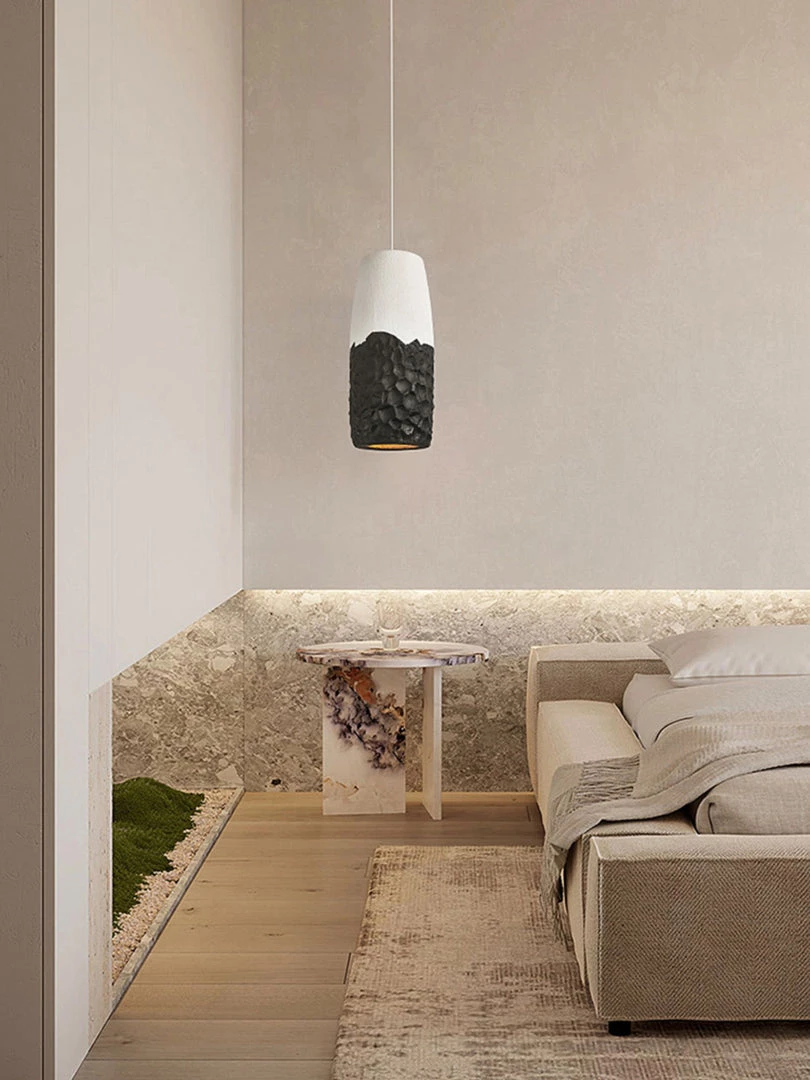 Create an atmospheric glow that is inviting to sight and touch with Acorn Lights. This modern pendant consists of two color High density polystyrene shells, one in color to direct light and the other in white to diffuse it. This unique pendant light may be hung above your dining room table or in any other room.