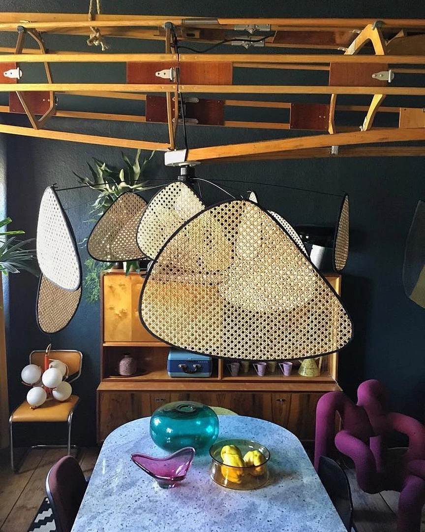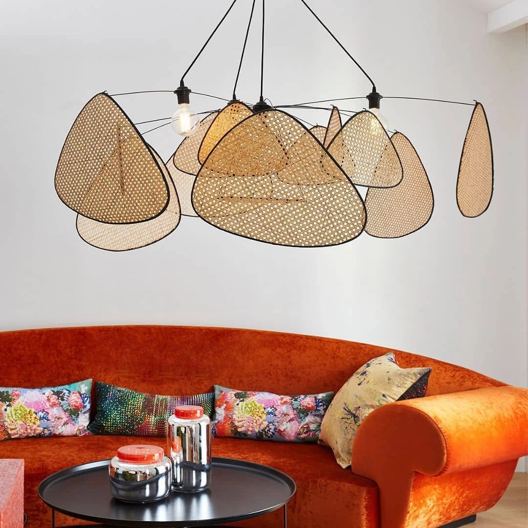 The light and airy Suspension Screen is a real work of technology and material selection. In the industrial spirit, its 10 rattan curtains are decorated with fabric on the edges. These suspensions emit open and warm light to perfectly improve your interior decoration, and at the same time Achieve its retro and design feel.
