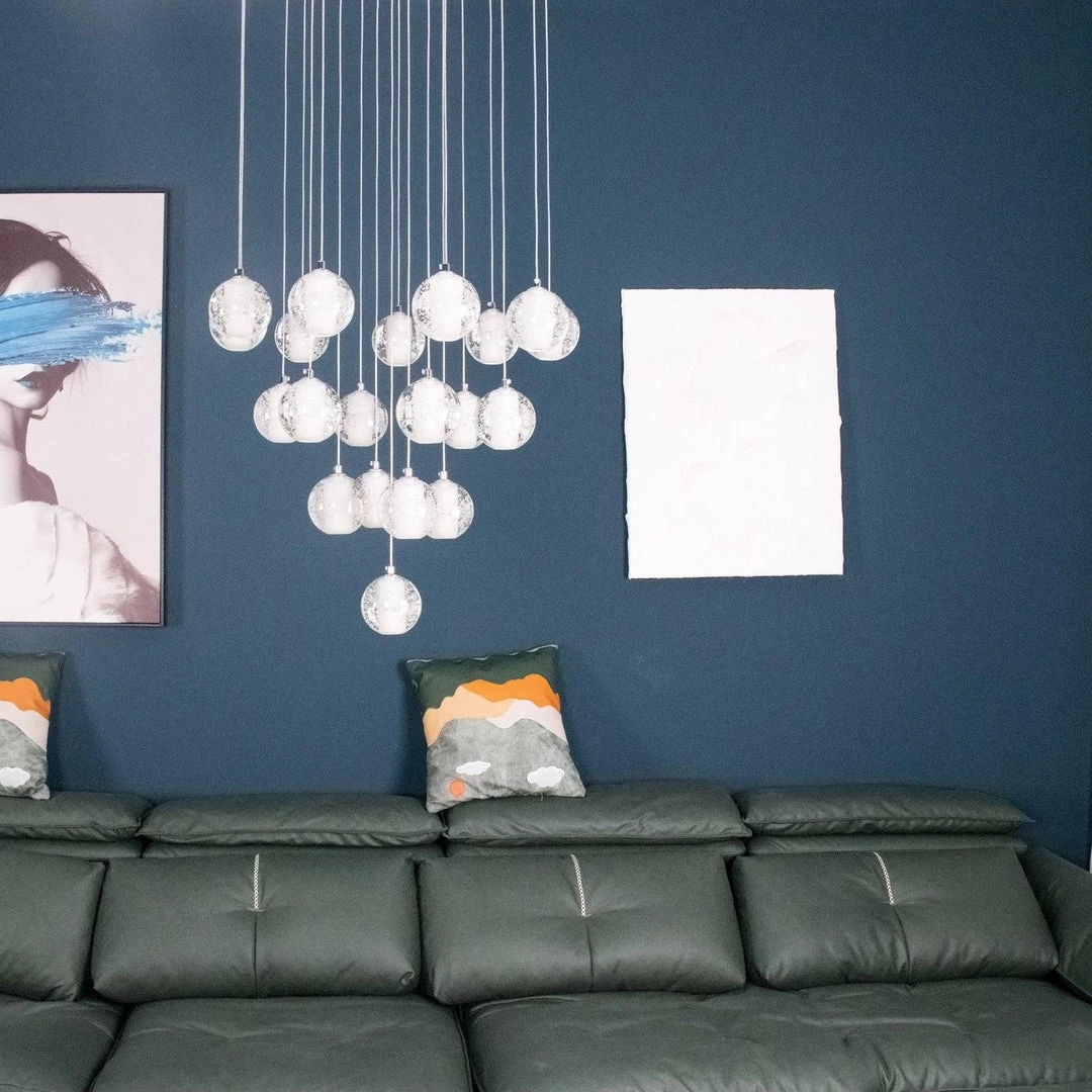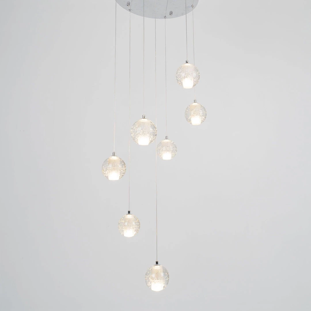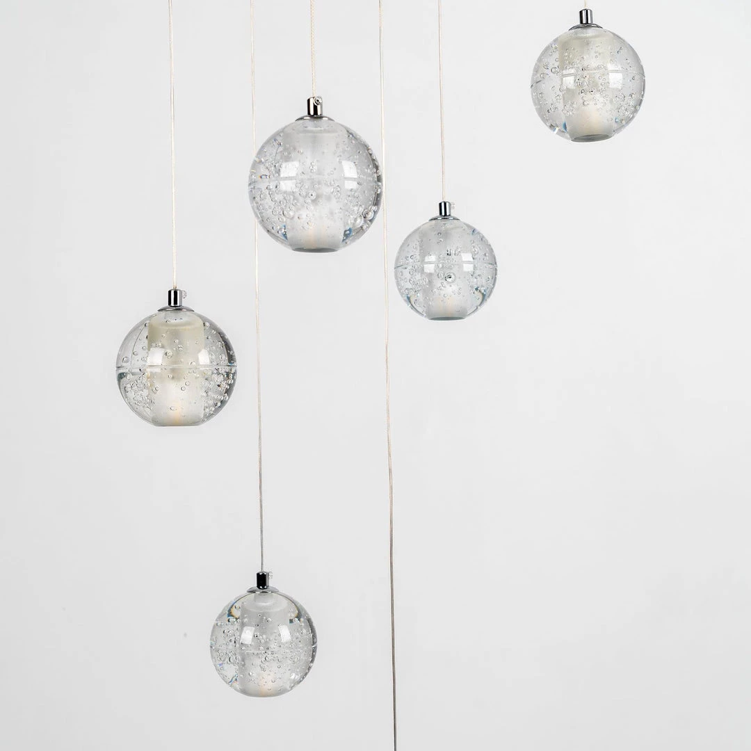 The Crystal pendant lamp interacts with the imperfections of the glass to create a rich halo of light. Visually quite subtle, the gains tremendous strength when clustered in random formations along horizontal and vertical applications. Popular residential and commercial applications include kitchens, restaurants, bedrooms and closets, hallways, patios, staircase illumination, foyers and lobbies, and other large indoor and outdoor configurations in private and public spaces.