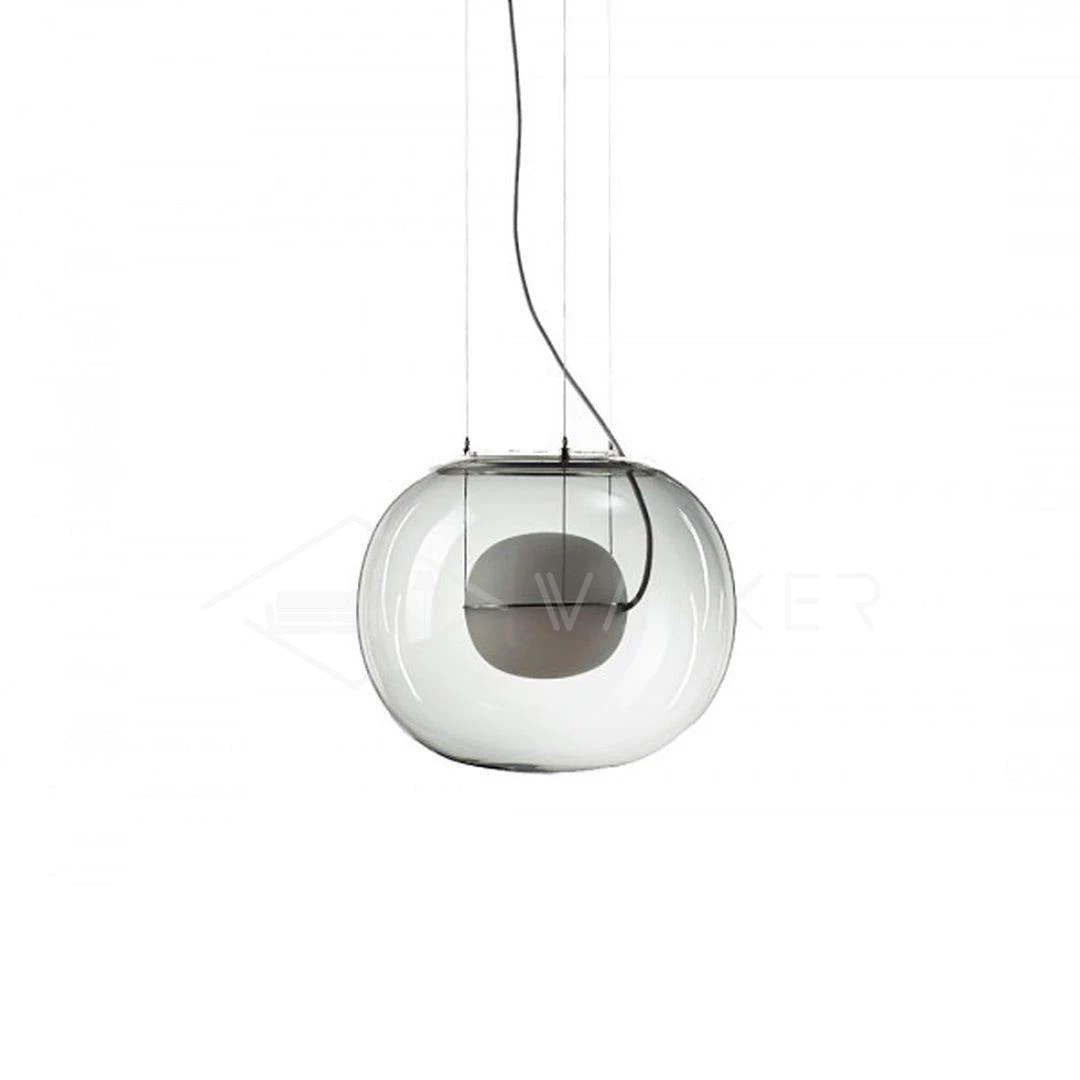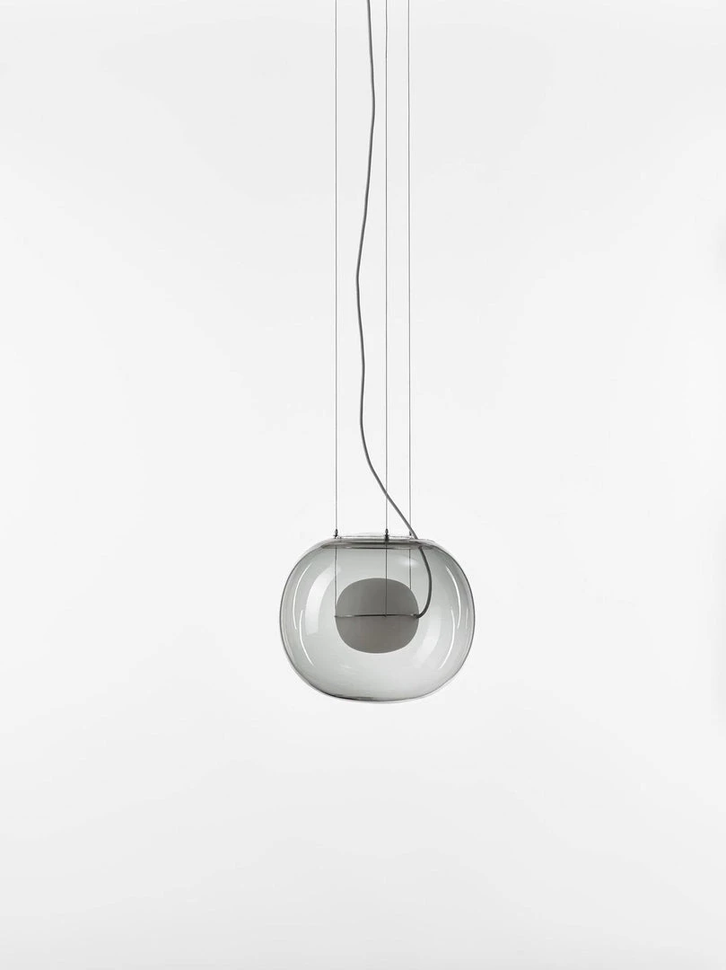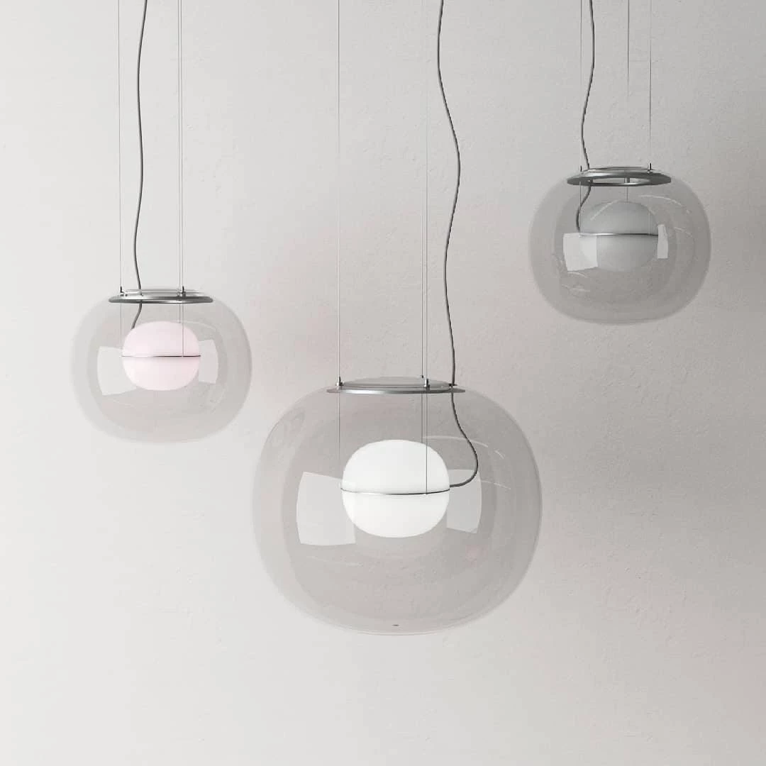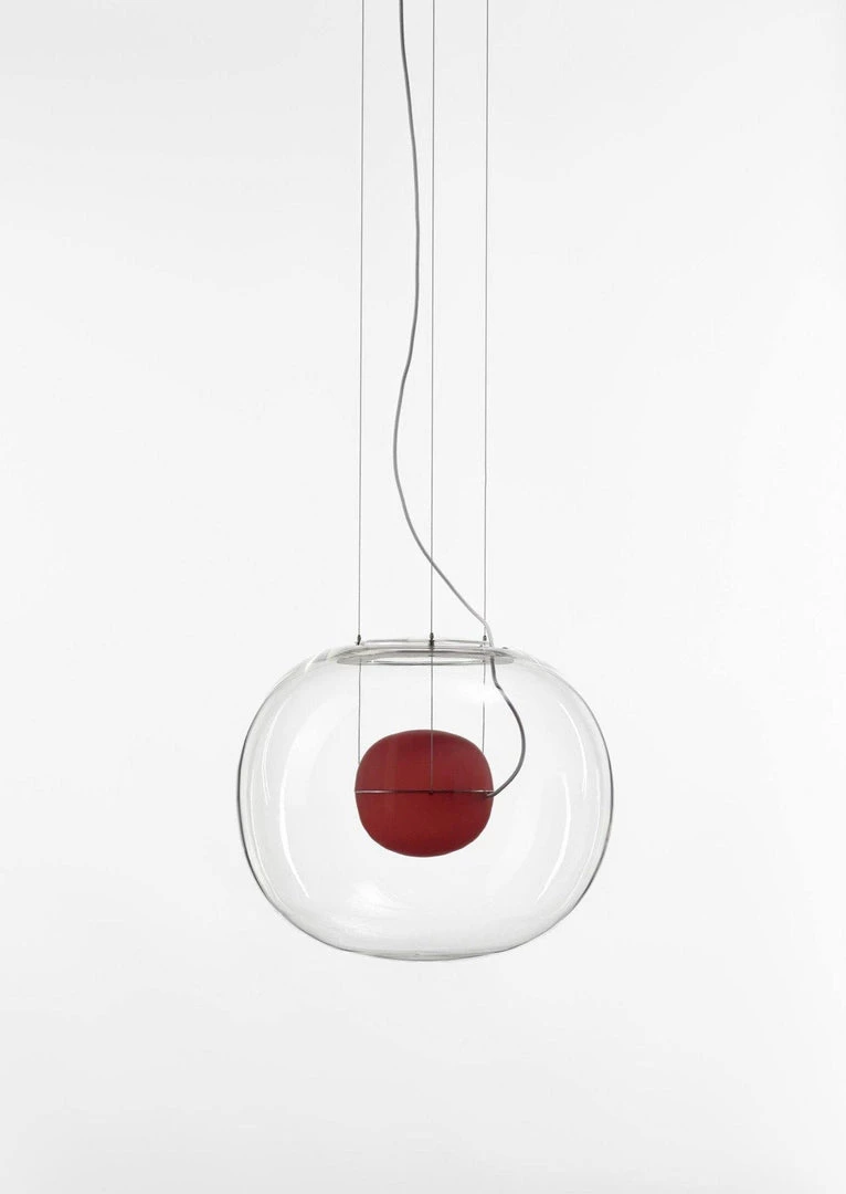 The sophisticated design of a bubble suspended in the center of a large sphere evokes a sense of levitation. Outer glass available with a glossy finish in colors: transparent and smoke grey transparent. The inner glass comes in a matte finish in colors: triplex opal, smoke grey transparent, red transparent and light pink transparent. Big One collection is available in two sizes.
