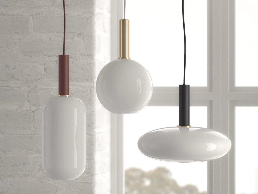 The lampshade is available in three different shapes, which can also be combined with each other excellently due to their harmonious curves and can thus be placed in clusters or in rows.