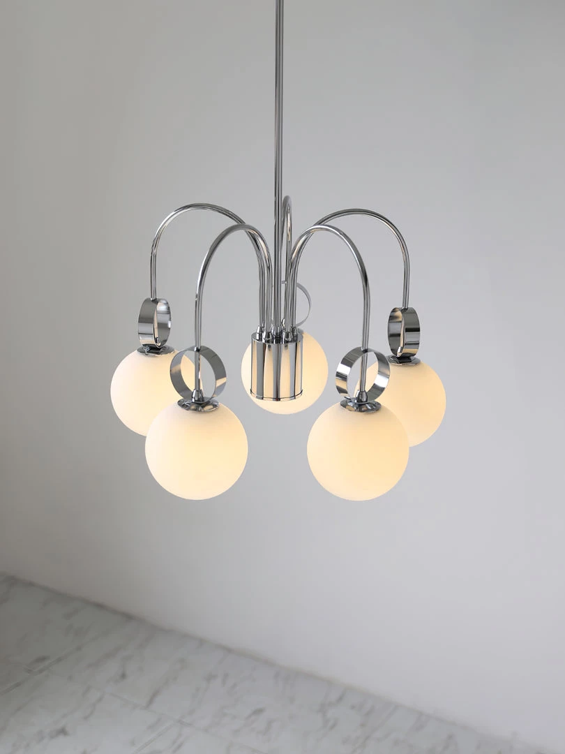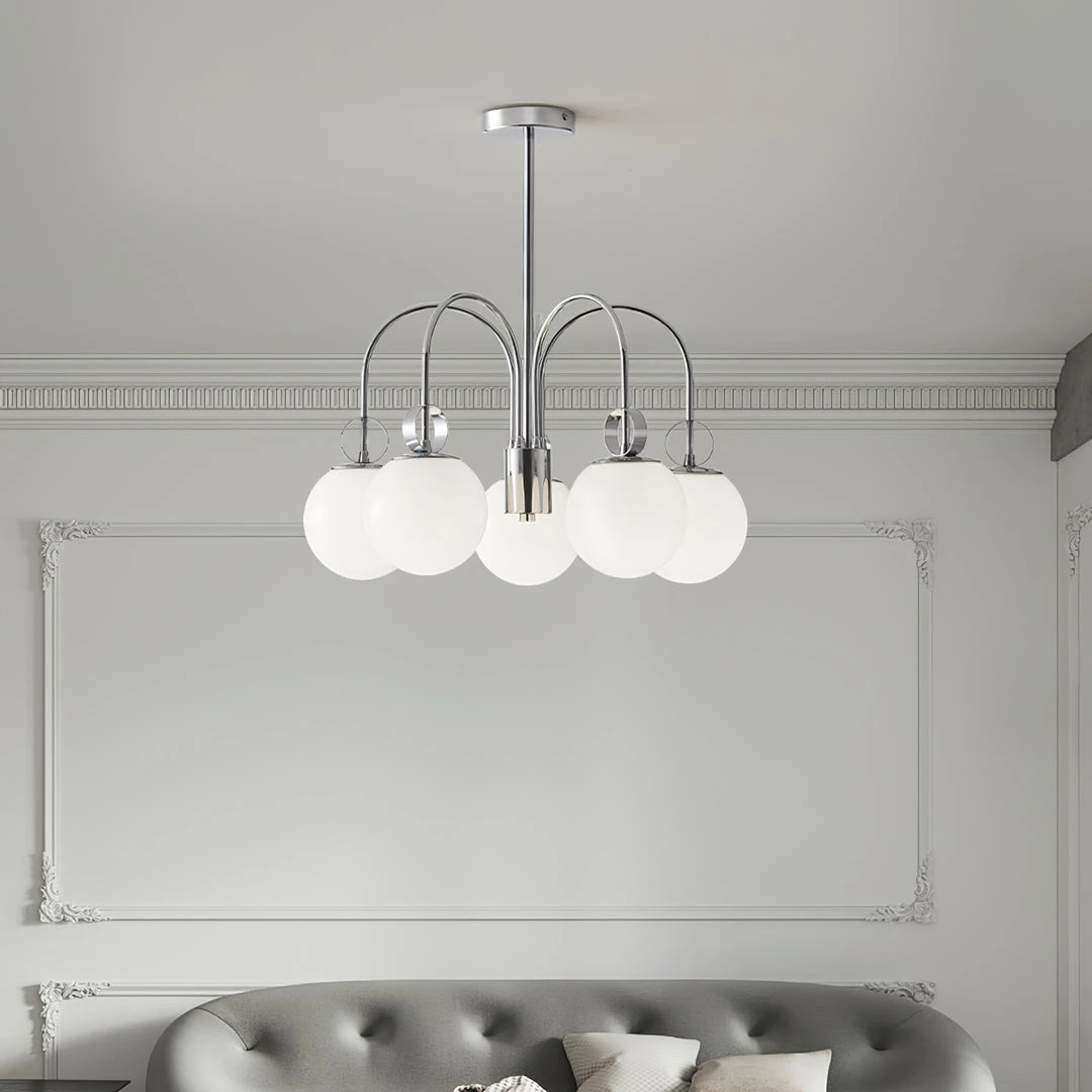 Inspired by the revival of mid-century fashions, the Carisa collection brings home this classic style. A chrome finish supports glossy white glass globes to create a timeless modern design.