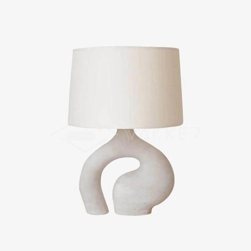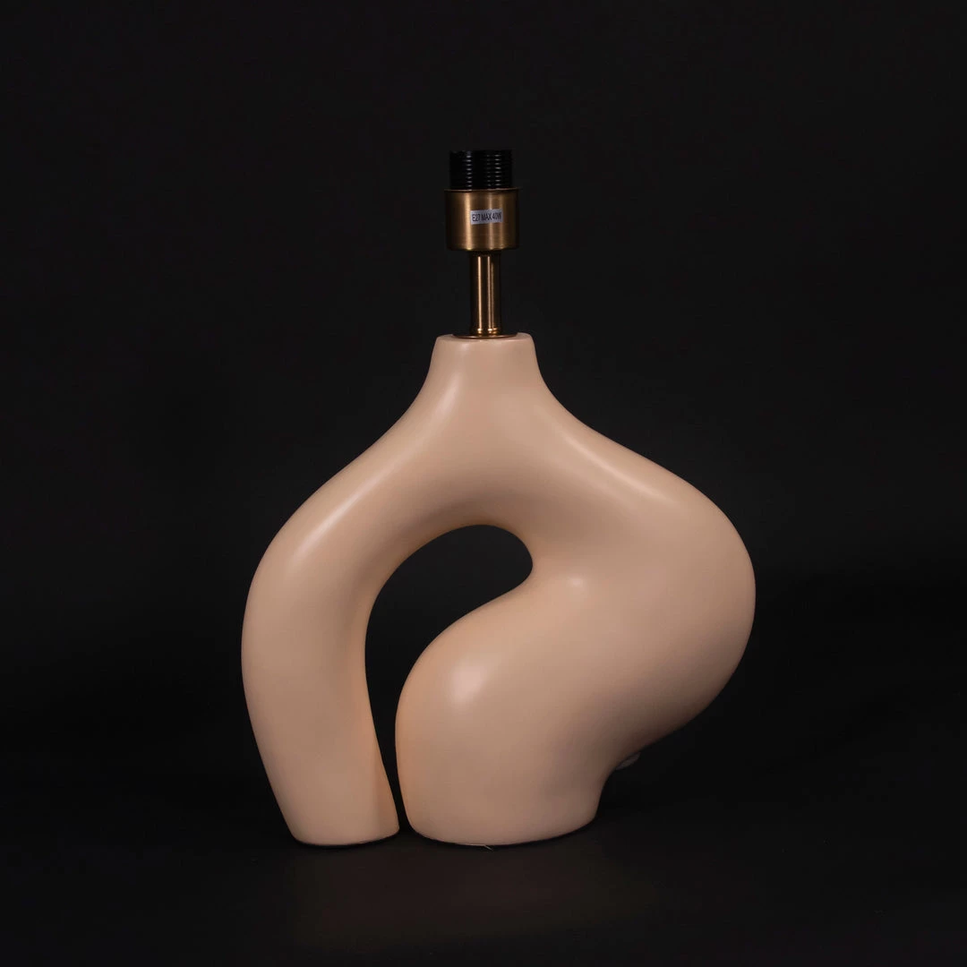 Handmade biomorphic table lamp with smooth, matte resin body and linen shade. The sensuous, weighty body draws inspiration from the curvature of the lower body.