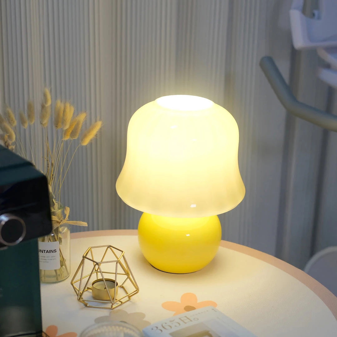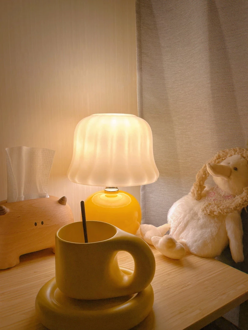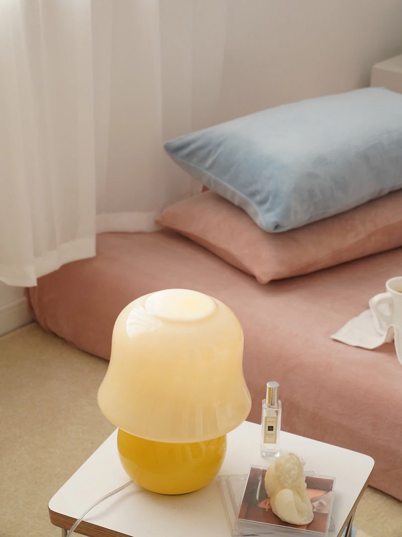 The mushroom-shaped table lamp that has been popular in Italy since the last century, the enamel glass material is very bright, and the hand-made texture flowing down the river is like a girl’s pleated skirt in a circle. This product is a very beautiful decoration during the day, and when the lights are turned on at night, it is an artistic work of art with a sense of atmosphere. This product has two color temperature adjustment methods for you to choose from.