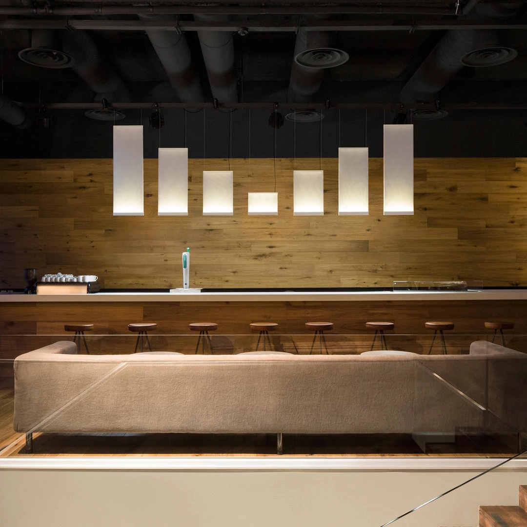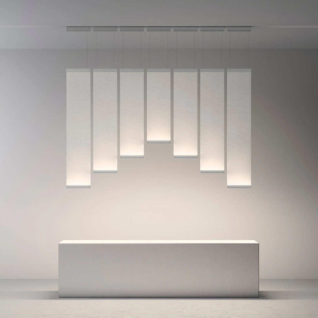 The Curtain is a collection of hanging lamps that combine direct light with vertical diffusion. The LED light combined with the reflective qualities of the tissue creates the effect of a vertical light cascade. The curtain lights are sure to be the feature of any space.