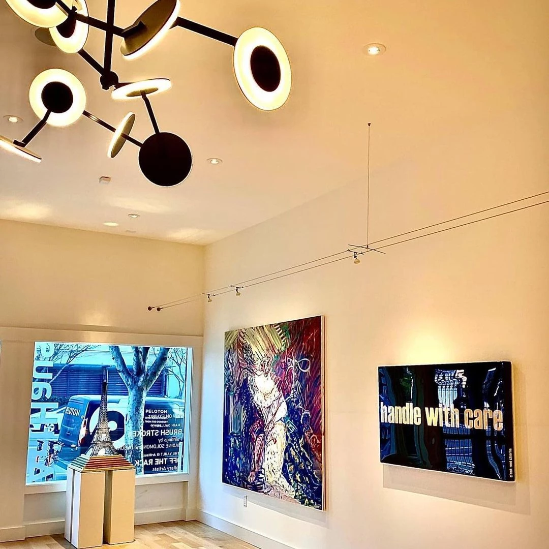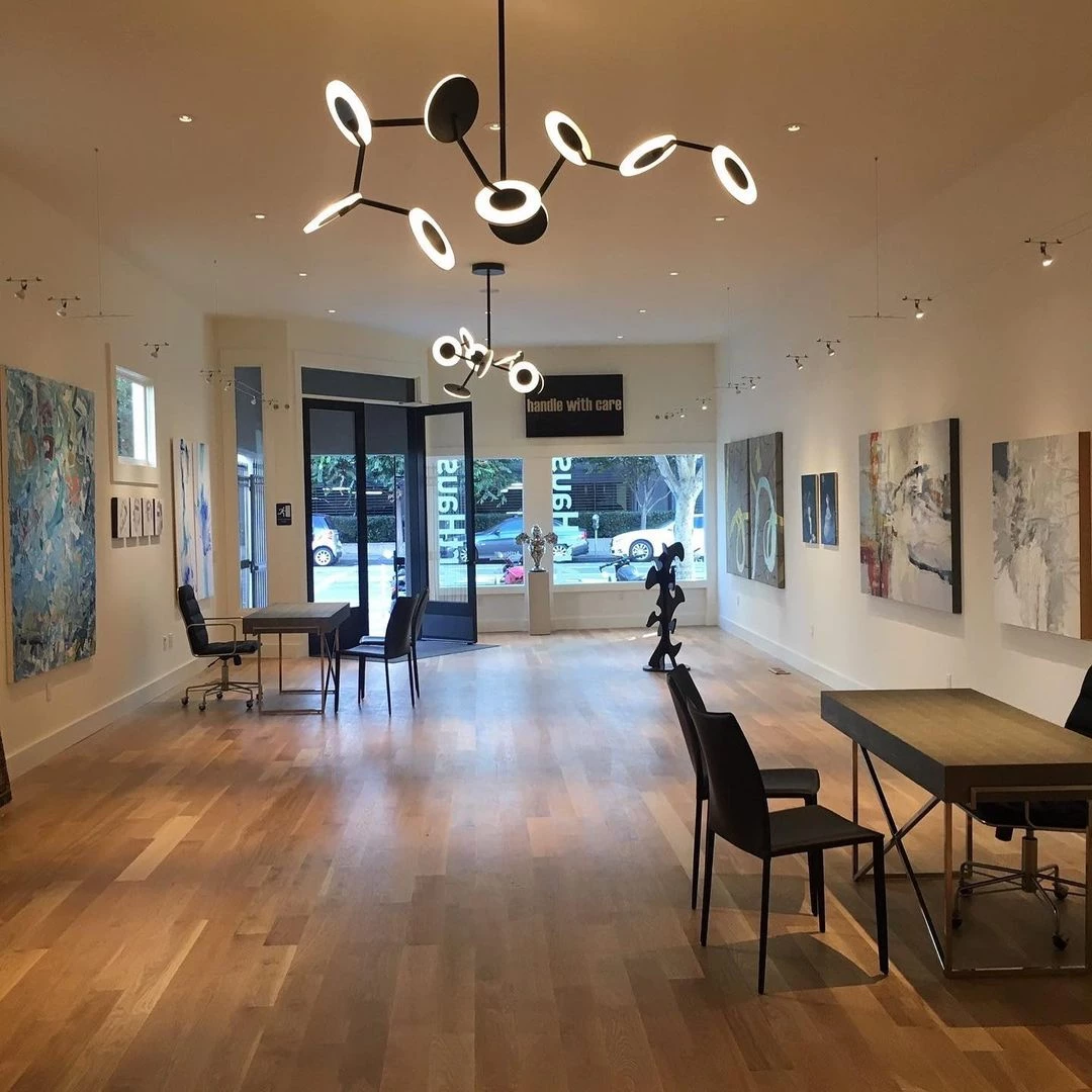 Disco is a chandelier with softly glowing rings of light. The discs are linked to one another by angled arms which change the orientation of the discs to one another. Many configurations are offered and the number of light discs can also be specified.