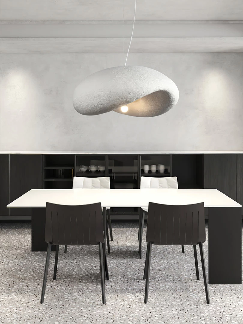 Handmade Wabi Sabi Vintage Modern Chandelier, New Japanese Resin Pendant lamp with Minimalist Organic Shape Style Retro Lamp Bedroom Kitchen Dinning Living Room. The same goes for this Wabi-Sabi Dunia pendant lamp. The illogical shape and special materials form this somewhat postmodern creation. Without conspicuous finishes, the gray or white color can better highlight the texture on its surface, setting off its texture. You might think of it as a cement chandelier, but this is made of lightweight resin and polystyrene material, and even a large size won’t be very heavy. Therefore, you don’t have to worry about any safety issues hanging from the ceiling.