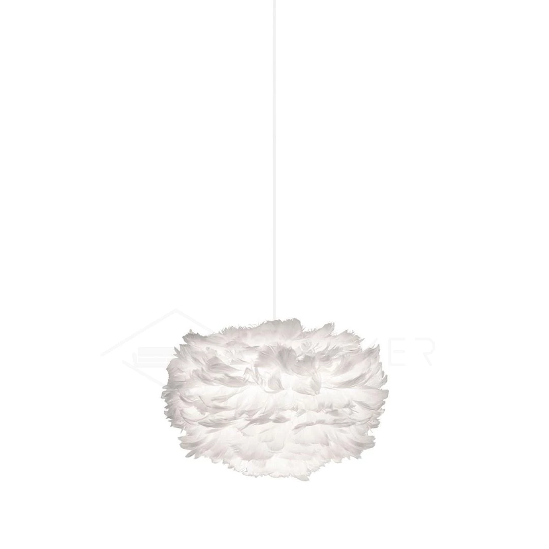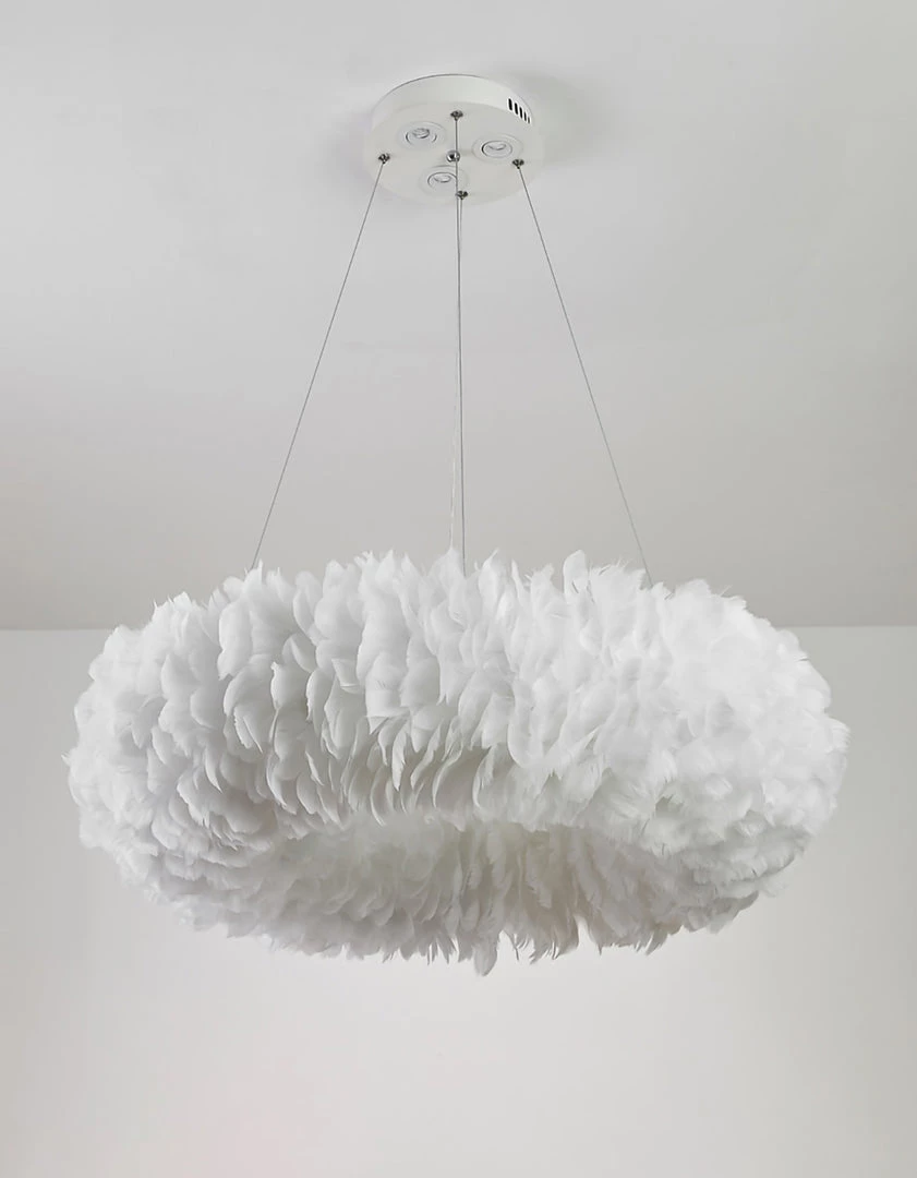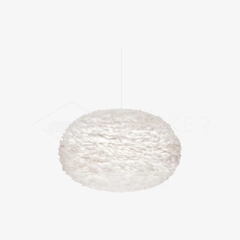 Thousands of goose feathers surround the bright core of the Eos White Pendant, a design that is a statement of humane practices and sustainable production. The feathers are procured responsibly, sanitized and repurposed for the fixture, then attached to the paper structure on the inside. The Eos is fire-resistant and easily maintained; you can clean and revitalize the feathers with a hairdryer.