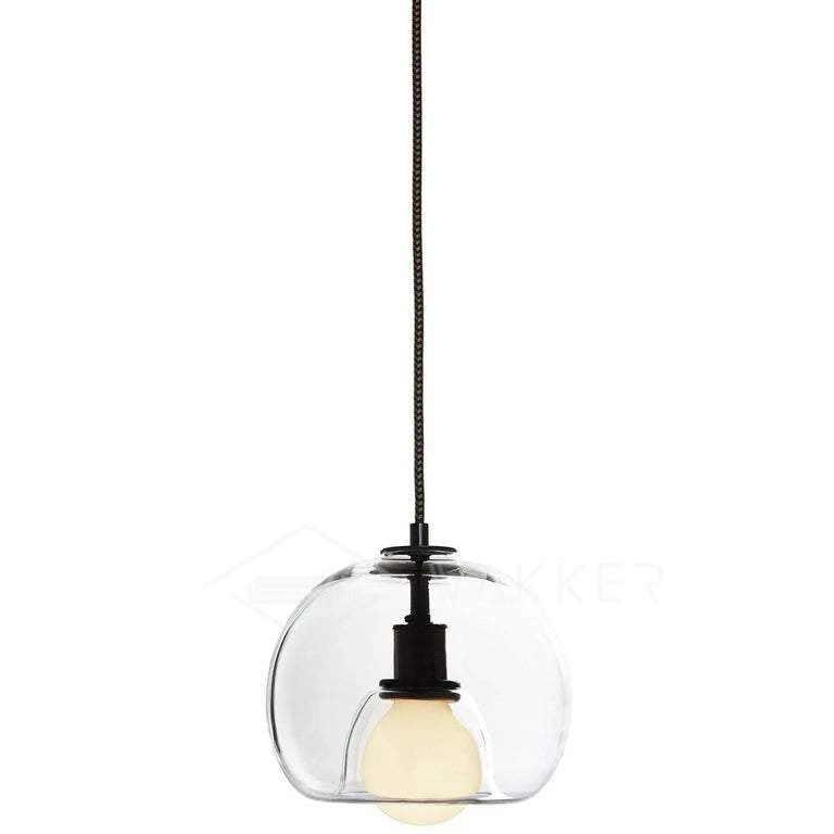 A handblown orb gracefully inverted to house a globe bulb, like a pearl encased in a glass oyster.Â