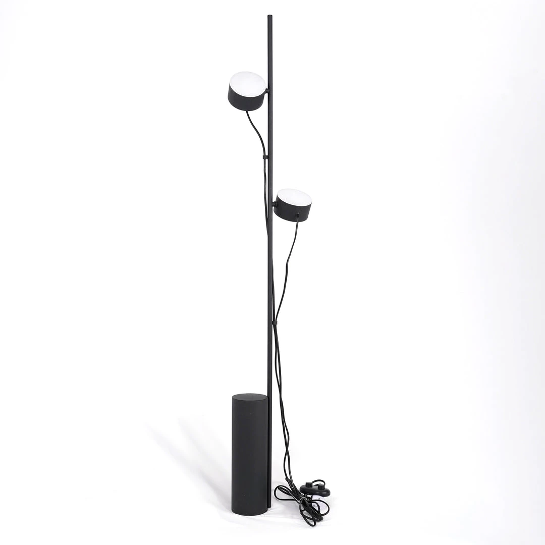 The Post Floor Lamp is an innovative modular lighting design with an archetypal appearance, graphic lines and forward-thinking functionalities. Exploring the utmost flexibility of a magnetic joint, the individual lighting units of the design can be positioned, turned. Use the magnetic cable drops to position the cords on the rod. The Post Floor Lamp comes with two lighting units.
