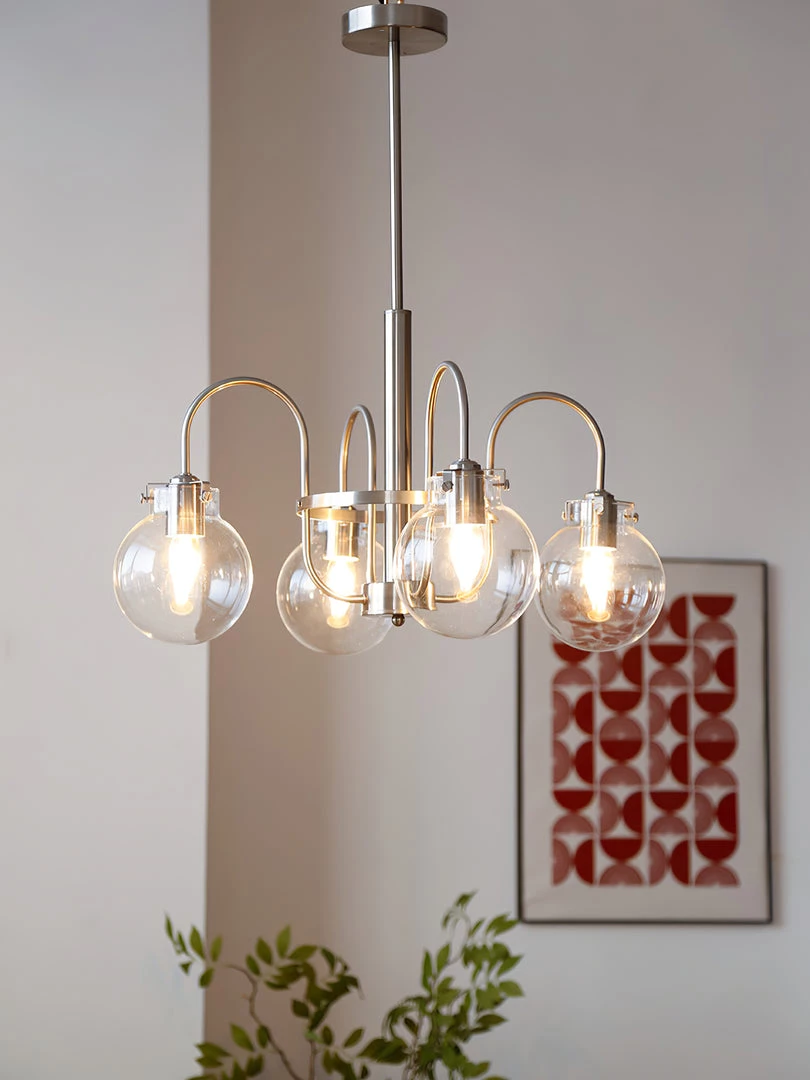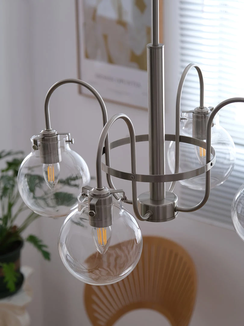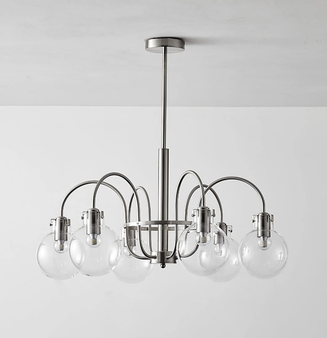 Hansford Chandelier pays homage to Thomas Edison with a vintage inspired filament bulb that is not only nostalgic but also very chic. With the classic chrome finish and the clear seedy glass shade, Trilogy brings old world style to modern elegance. On trend and classy.