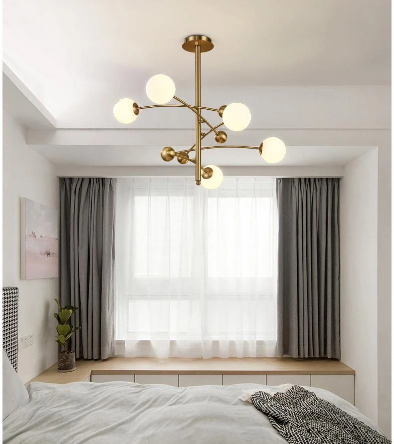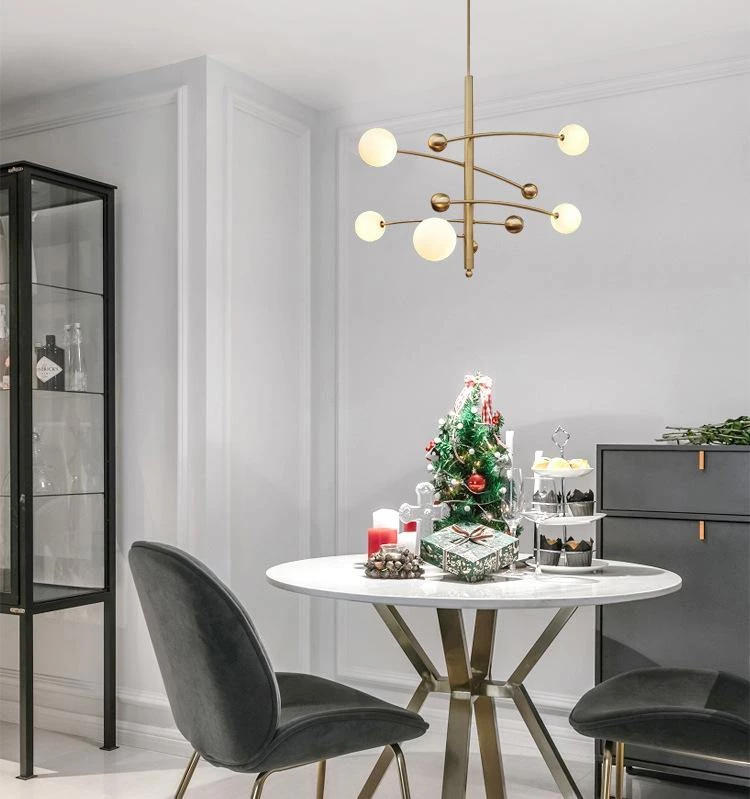 The chandelier is an elegant ensemble composed of some frosted glass bulbs attached to a solid metal lamp ring. Its design elements are clearly structured. The lightweight chandelier is an excellent representative of minimalist design and can produce visual impact.