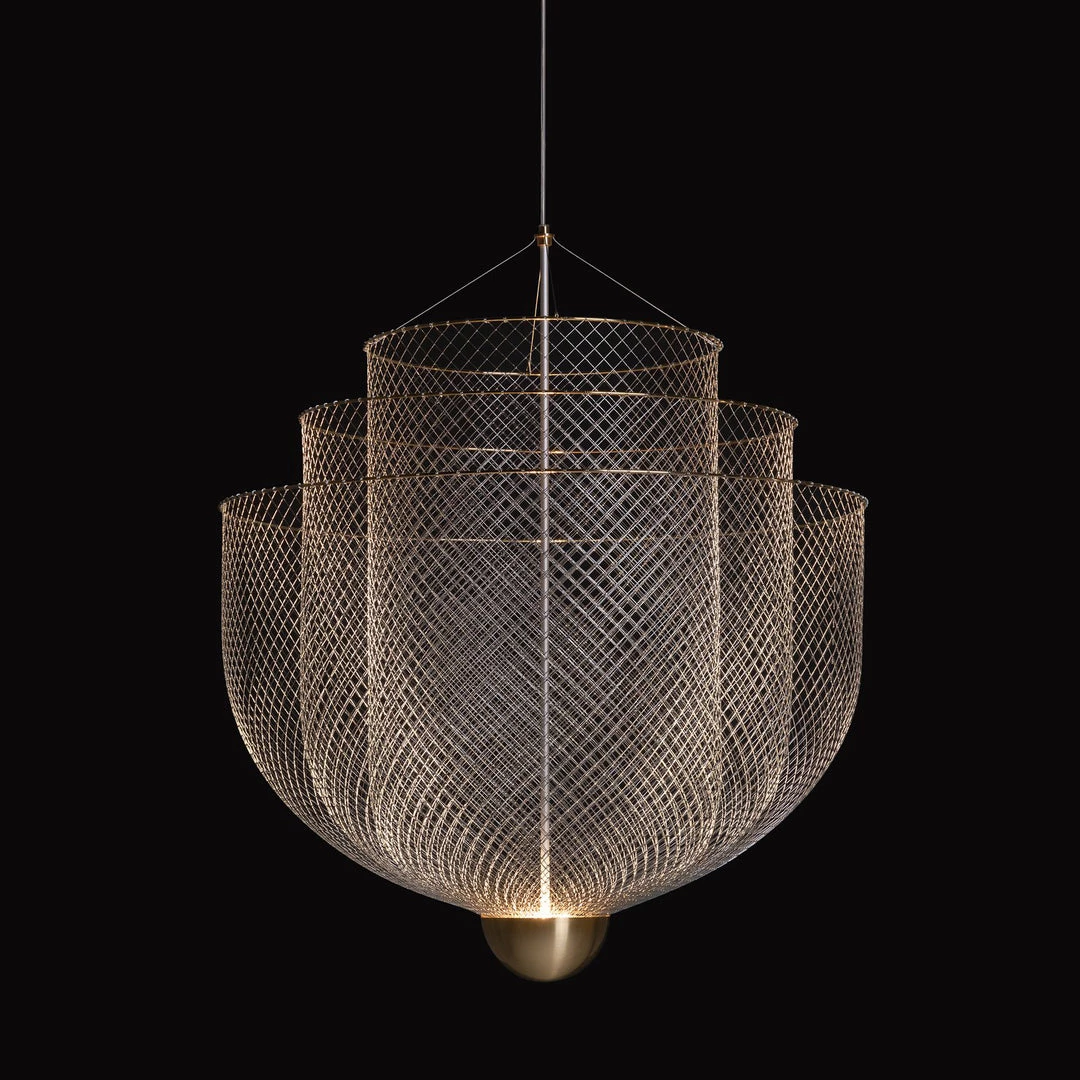 By re-examining these materials, he comes to new aesthetic qualities and applications of the materials. The beautifully designed Meshmatics Hanging lamp is a perfect example of this; this is namely made of metal wire. a machine and tools. With his own invented equipment, with the majestic Meshmatics Hanging lamp as a result.