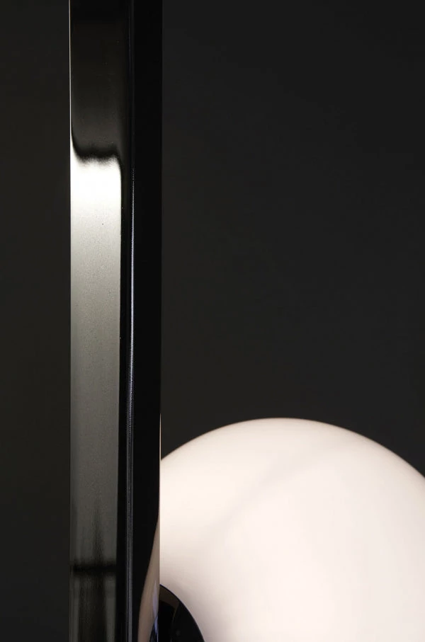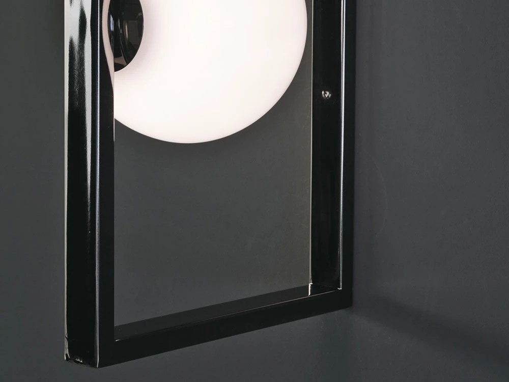 Wall lamp with diffused light. Burnished natural brass, polished or matte black nickel, polished gold structure and white Murano blown glass diffusers.