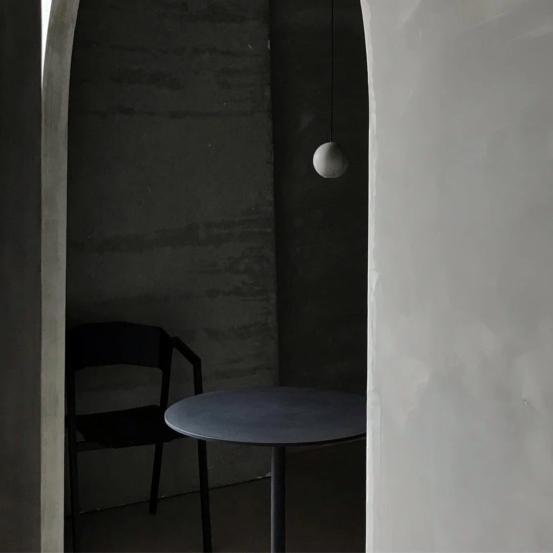 Moon is a pendant light made of concrete and black aluminum with LED light source.‎