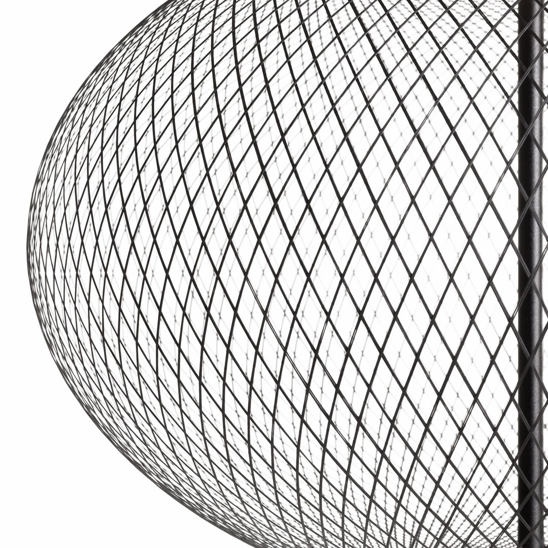The NR2 floor lamp looks like a bright, radiant globe of light, surrounded by a fine, cleverly textured mesh that shimmers in the light and casts a fascinating shadow play into the room. Glass fibres dipped in synthetic resin form the intricate grid structure that makes the luminaire appear so elegant and carefree.