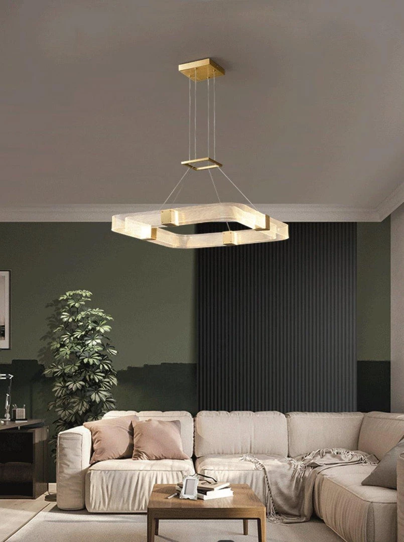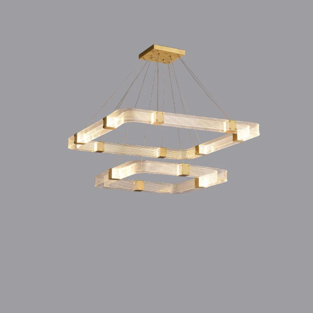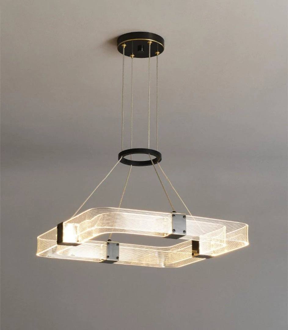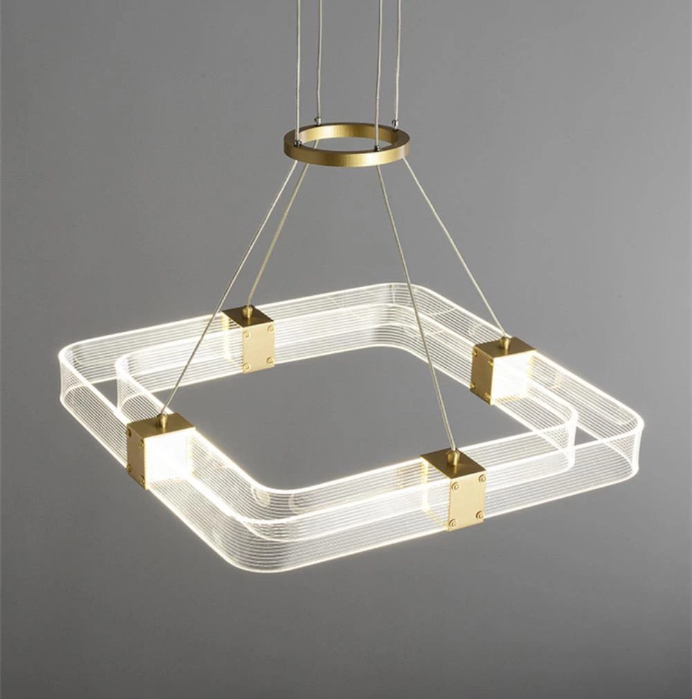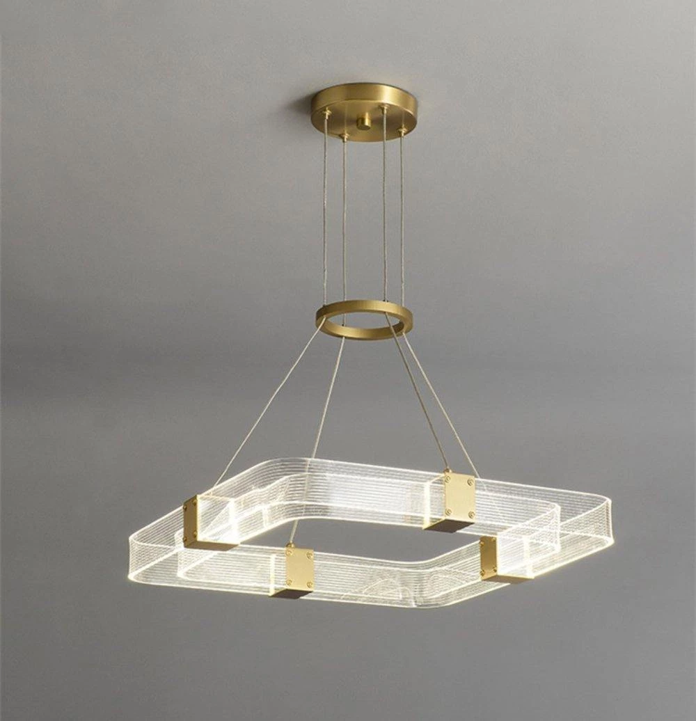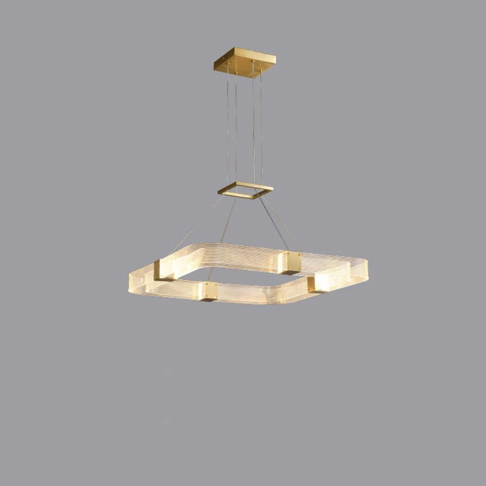 Artisanal luxury is paired with contemporary design in the Parallel Ring LED Chandelier. Its ringed silhouette consists of parallel handcrafted, textured acrylic panels that are joined by finished brass inserts.Â