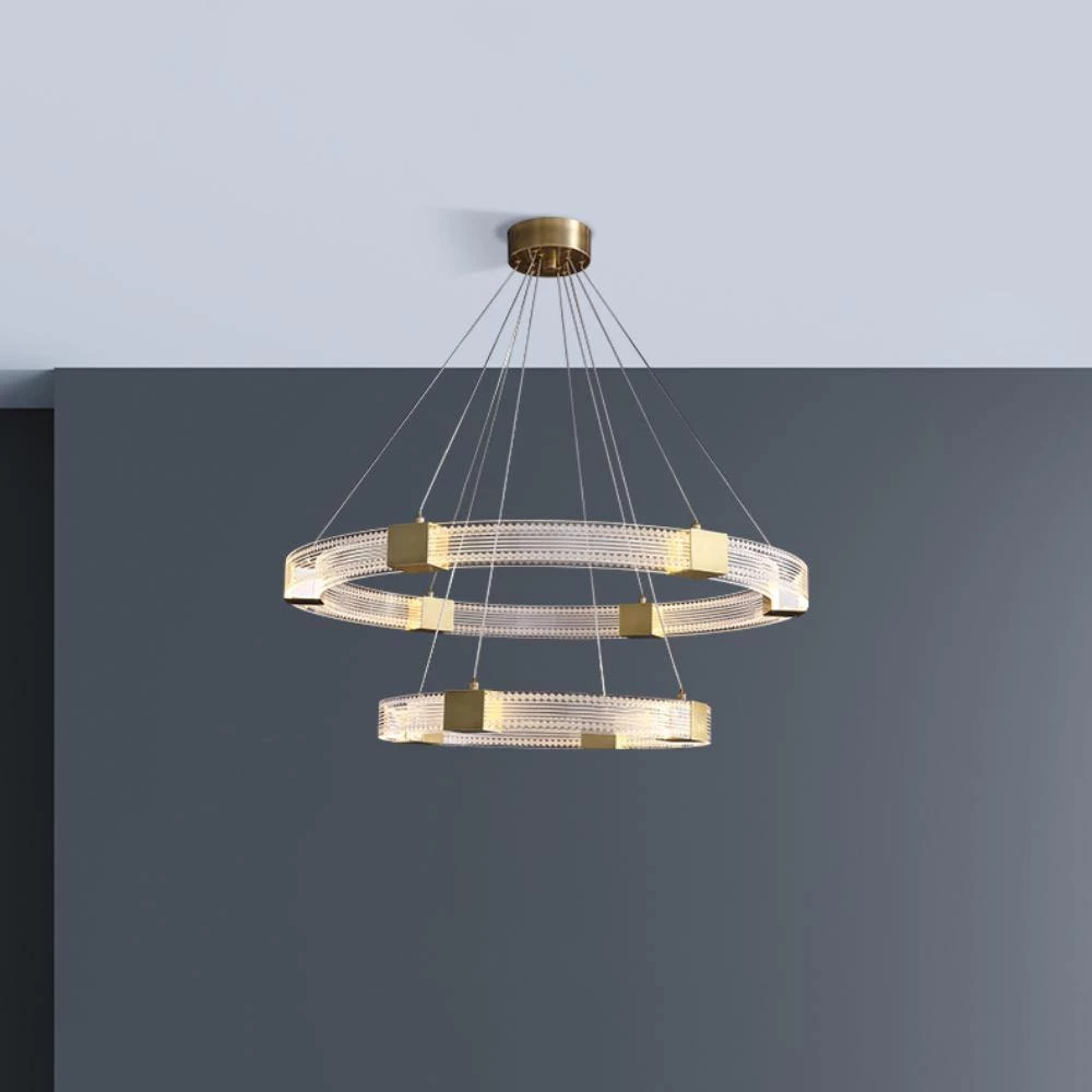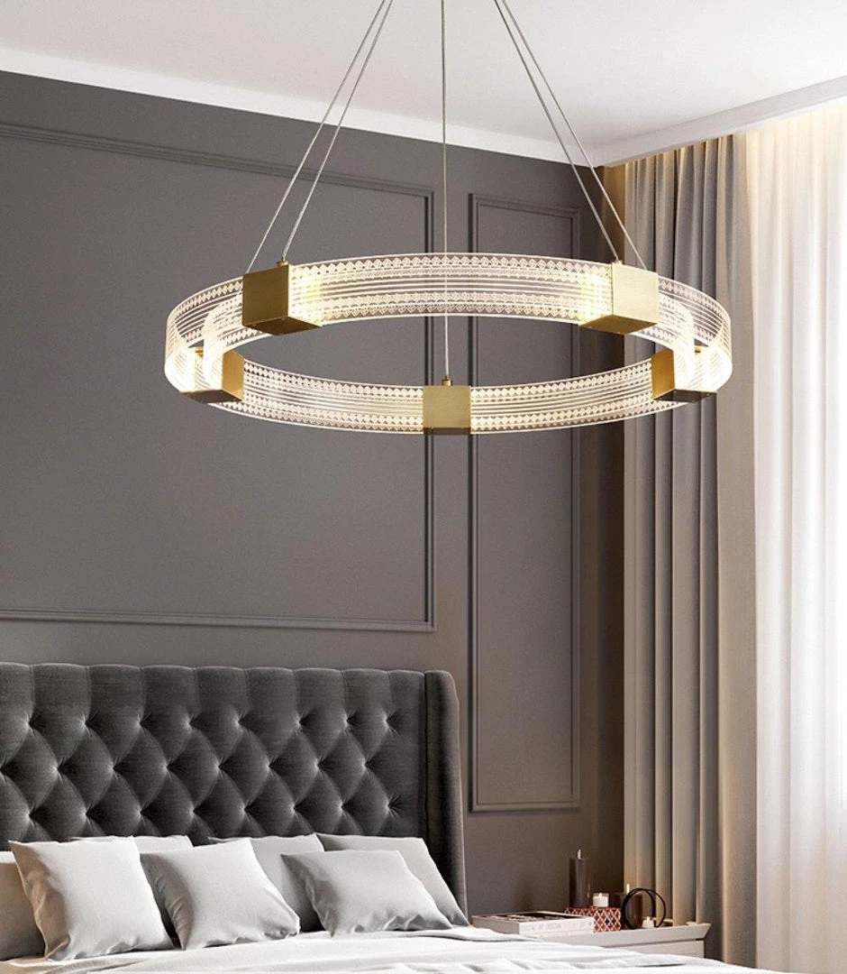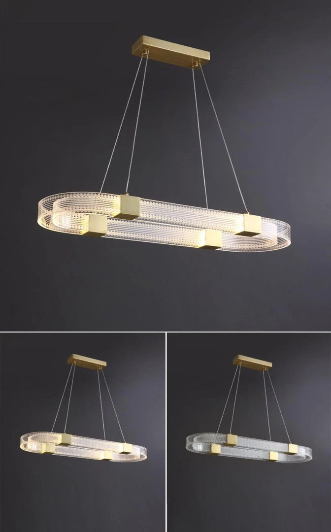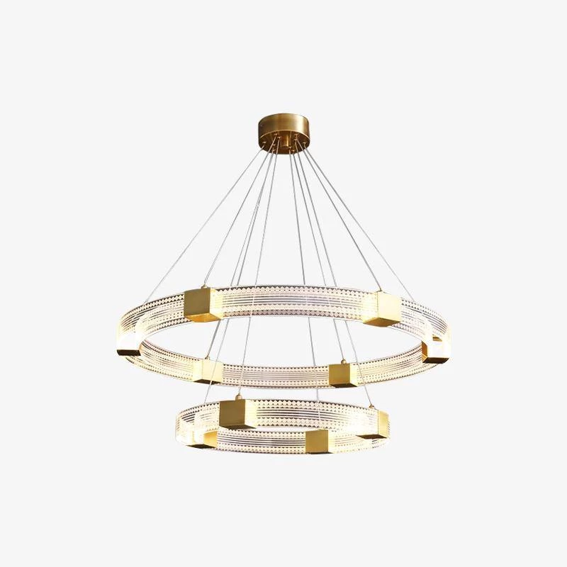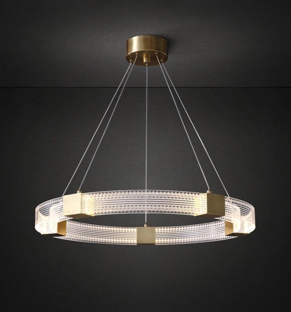 Artisanal luxury is paired with contemporary design in the Parallel Ring LED Chandelier. Its ringed silhouette consists of parallel handcrafted, textured acrylic panels that are joined by finished brass inserts. These brass inserts contain integrated LEDs that sit flush behind Frosted acrylic diffusers, pointed both down and sideways for a dazzling display once lit.
