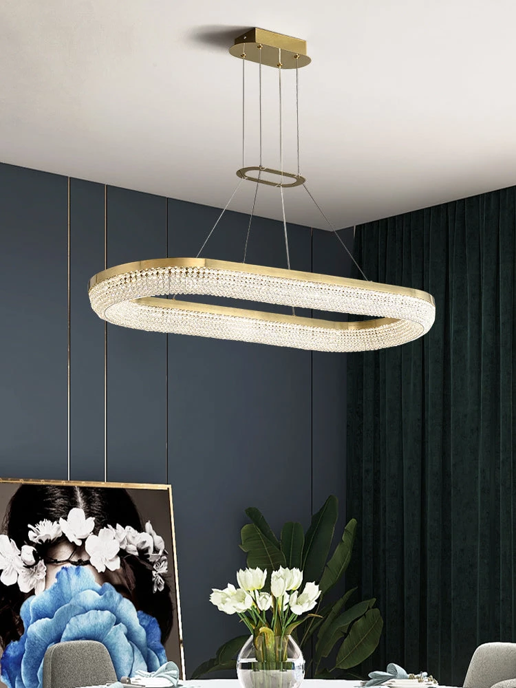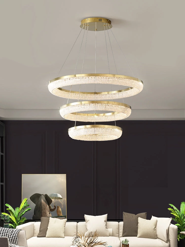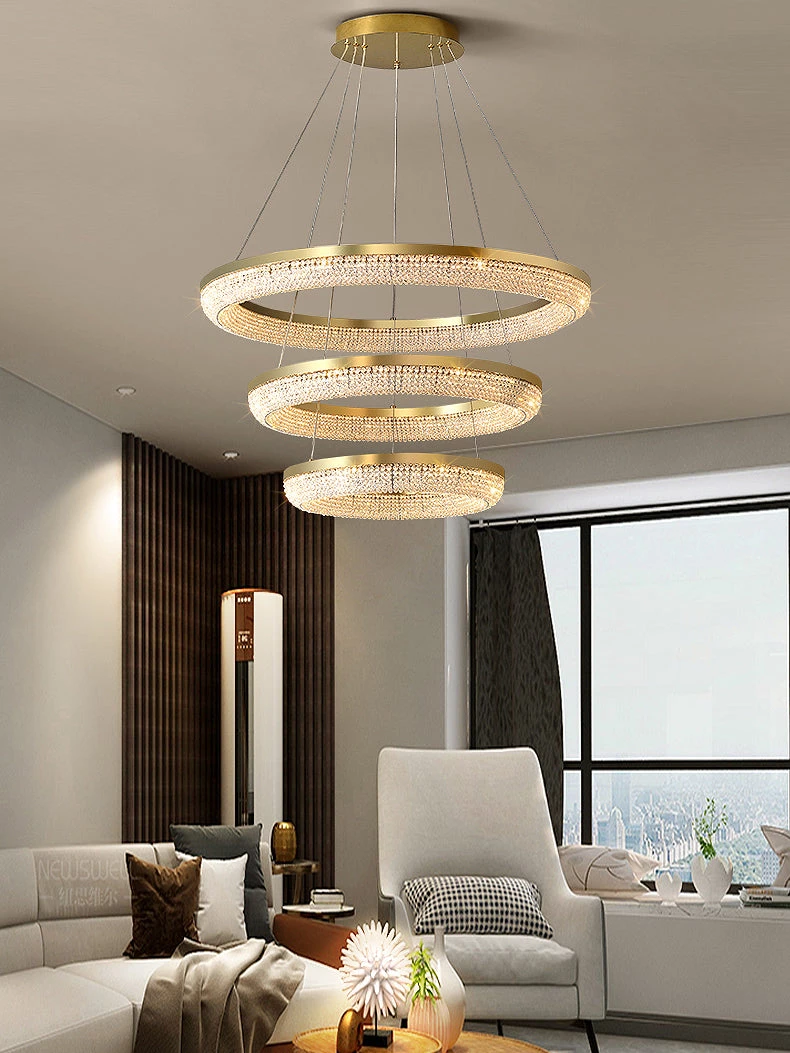 This beautiful Round Ring Crystal Chandeliers has a ring designed body. Premium quality K9 crystal shades can be used to decorate your house and make it look stunning. Exaggerated proportions and elegant crystal accents suit modern and luxurious design styles. Suitable for living room, bedroom, dining room, hotel, etc. this crystal chandelier will create a stunning and dazzling light effect.