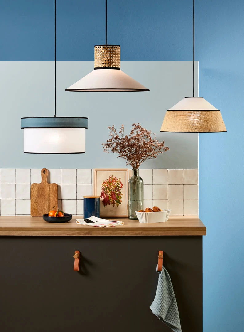 The Singapore pendants are composed of three or four shades made from natural materials which is openworked providing a soft and aesthetic light diffusion.