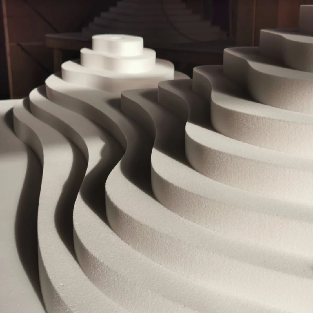 Because the surface of melamine absorption foam is almost doubled due to the special shape of the lamp, the Rice Field has an excellent sound-absorbing effect. The particularly efficient production method and the LED lighting used also make this lamp a sustainable product.