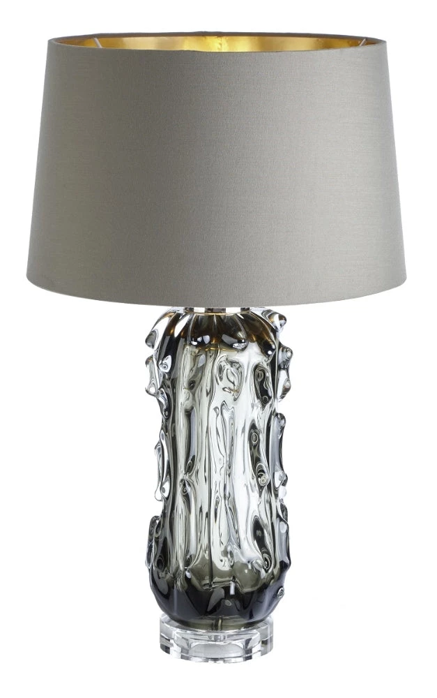 The Vakker Rico Table Lamp is like the shimmer of water in the rain. It is burning with style and is a lovely piece for your space. Whether for a console table in a hall or in the prime spot on your desk top, it brings elegance. A substantial piece that gives so much to your rooms. It is heavy blown glass that has a bright nickel finish. Handcrafted to perfection, its contemporary styling with classic roots is sublime. Finish it with the lamp shade of your choice. From a modern bright colour to a powerful monochrome, this lamp will look exquisite.