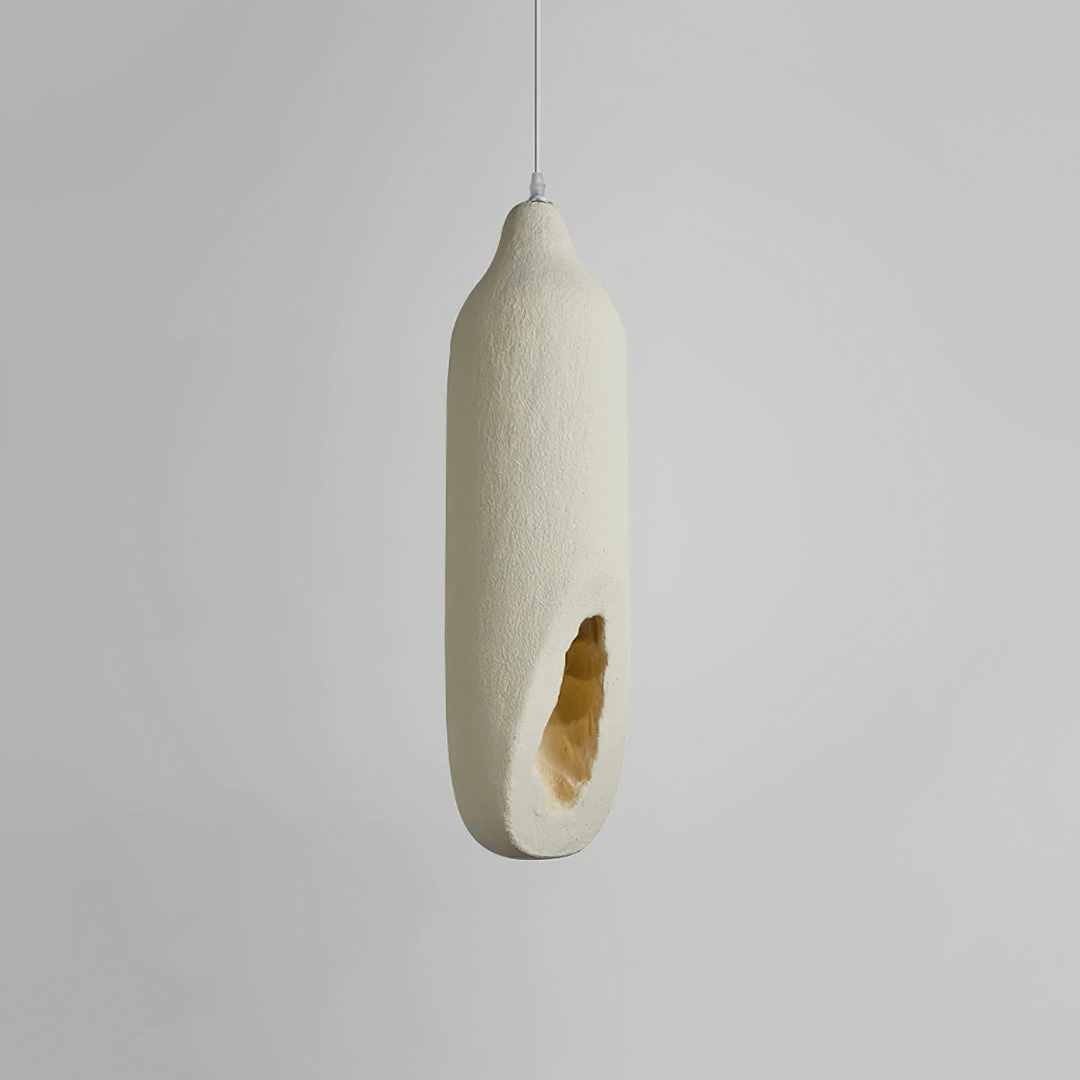 With a rough, simple exterior, and an intricate interior, The Seltanica Lamps are hand cast from white High density polystyrene.