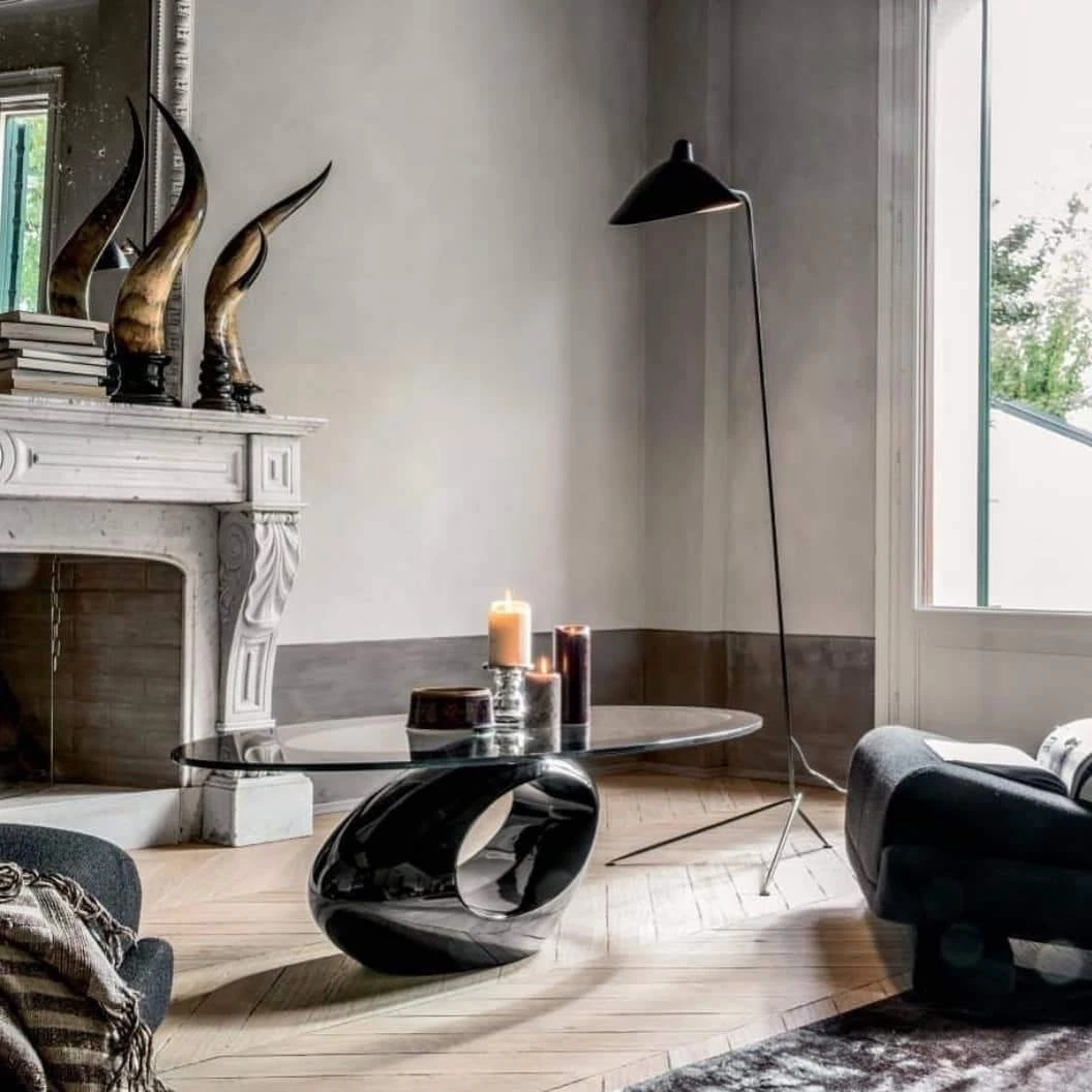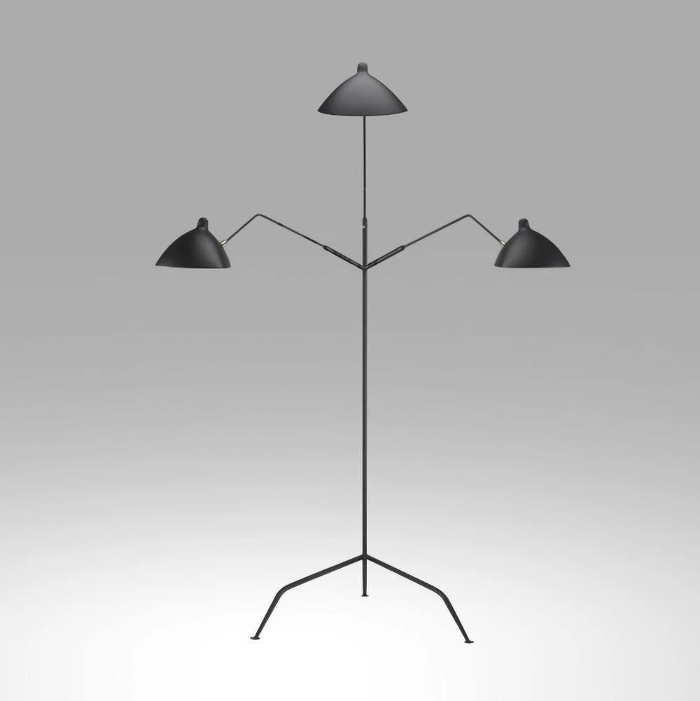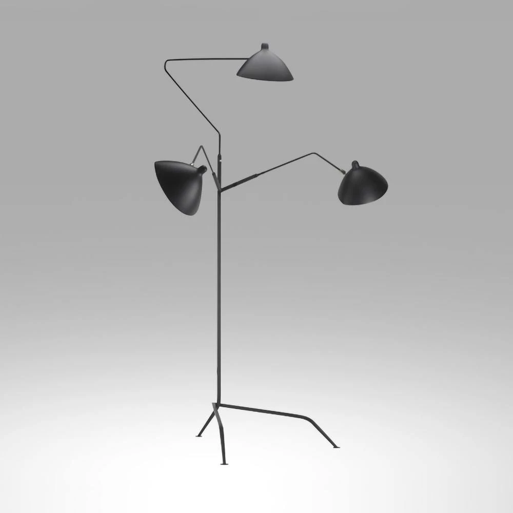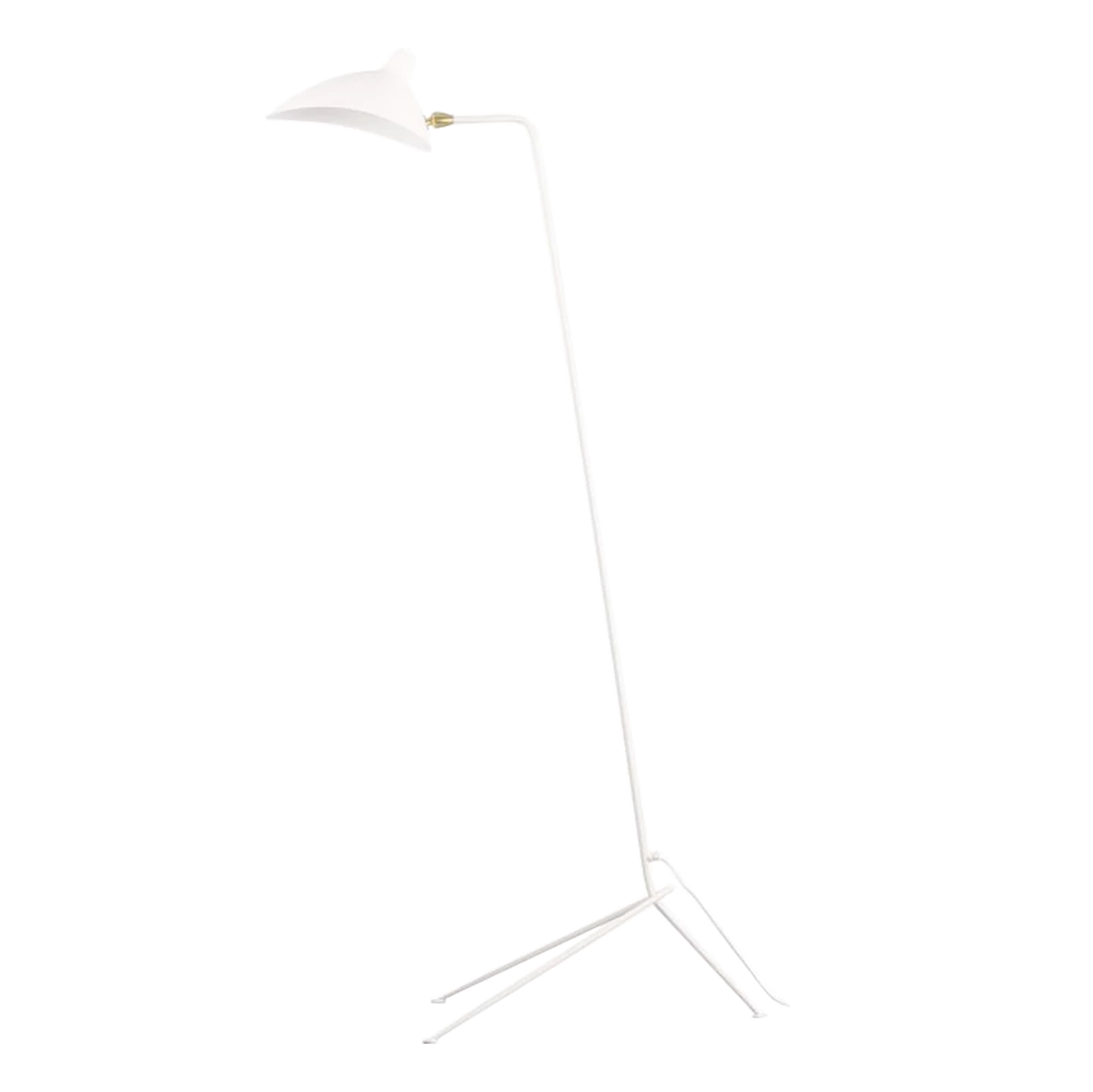 Mouille designed his angular, insect-like lights as “a reaction to the Italian models that were beginning to invade the market in 1950,” which he criticized for being “too complicated.” His large-scale Three-Arm Floor Lamp (1952) has a kinetic, sculptural aesthetic that evokes a sense of movement in space. All of the arms can be rotated in various directions, allowing for ample, well-directed lighting for any task.