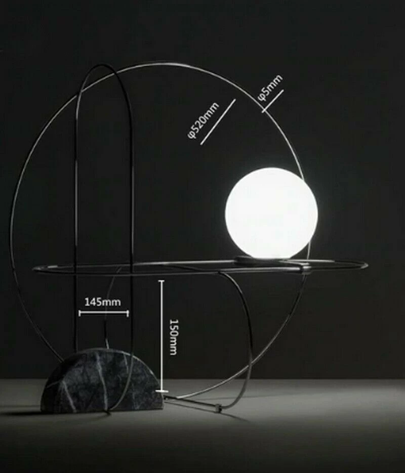 The table version is available in two models while the suspension version comes in several variants: bare, with only the frame and glass sphere (also available with three spheres), with a diffuser in curved white glass (diameter 45, 65, 85 cm), or with a painted metal disc in white or black (diameter 45, 65, 85, 100 cm).