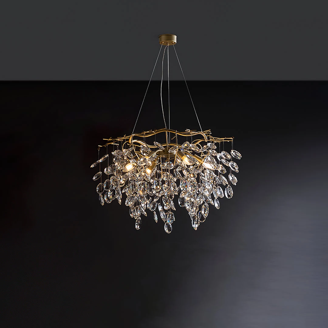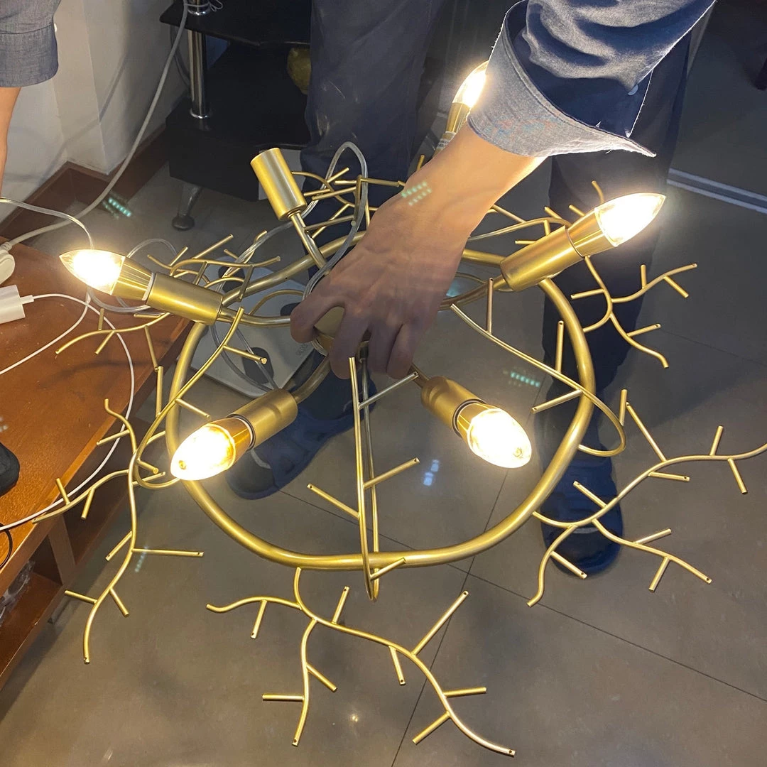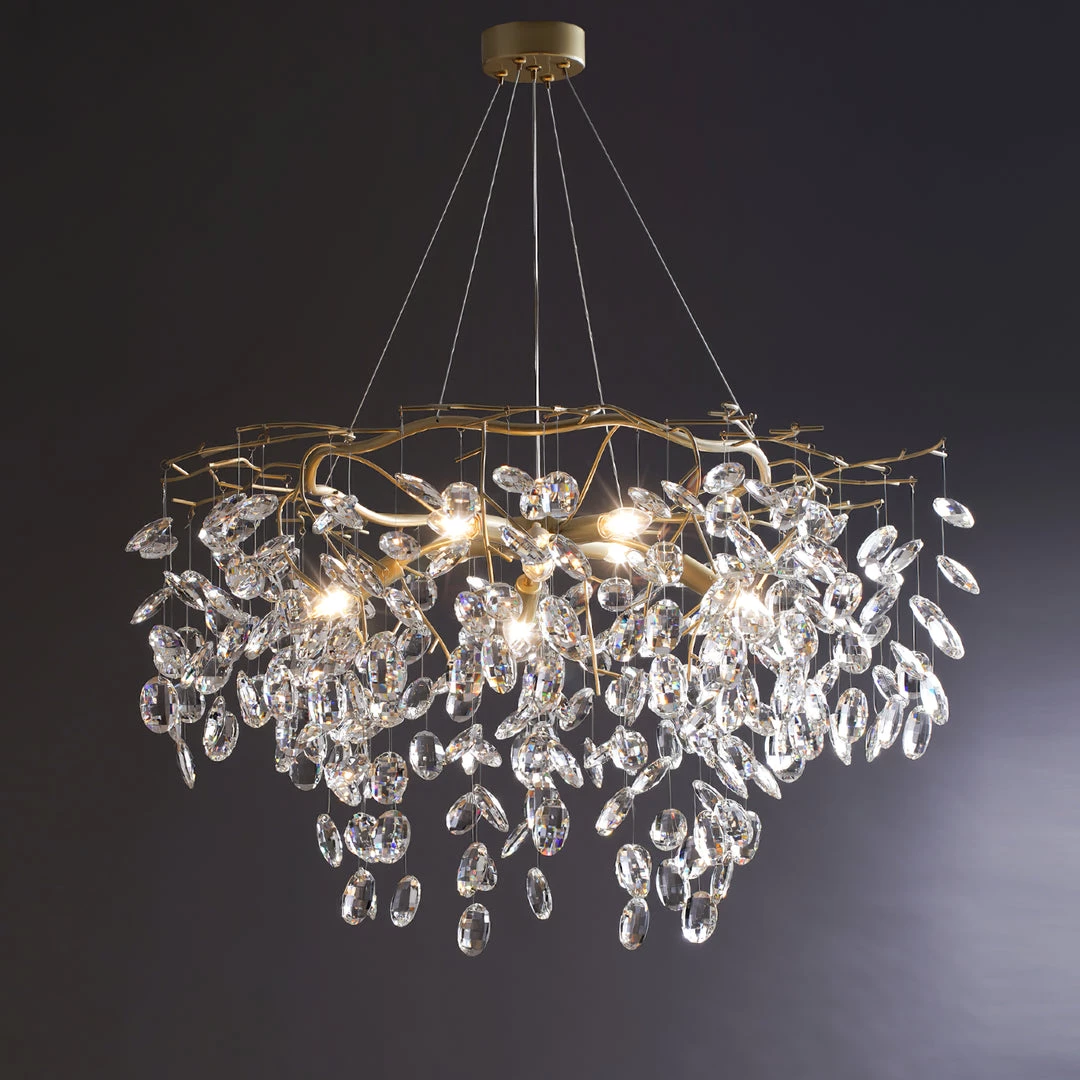 The Sofia round branch chandelier boasts a modern style with gold branches illuminated by LED lights. Use it in your living and dining rooms or glam up your bedroom with this fabulous gold branch chandelier.