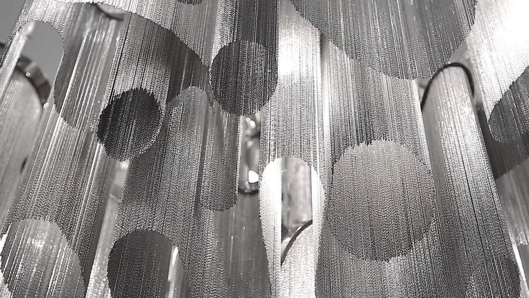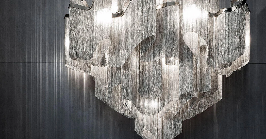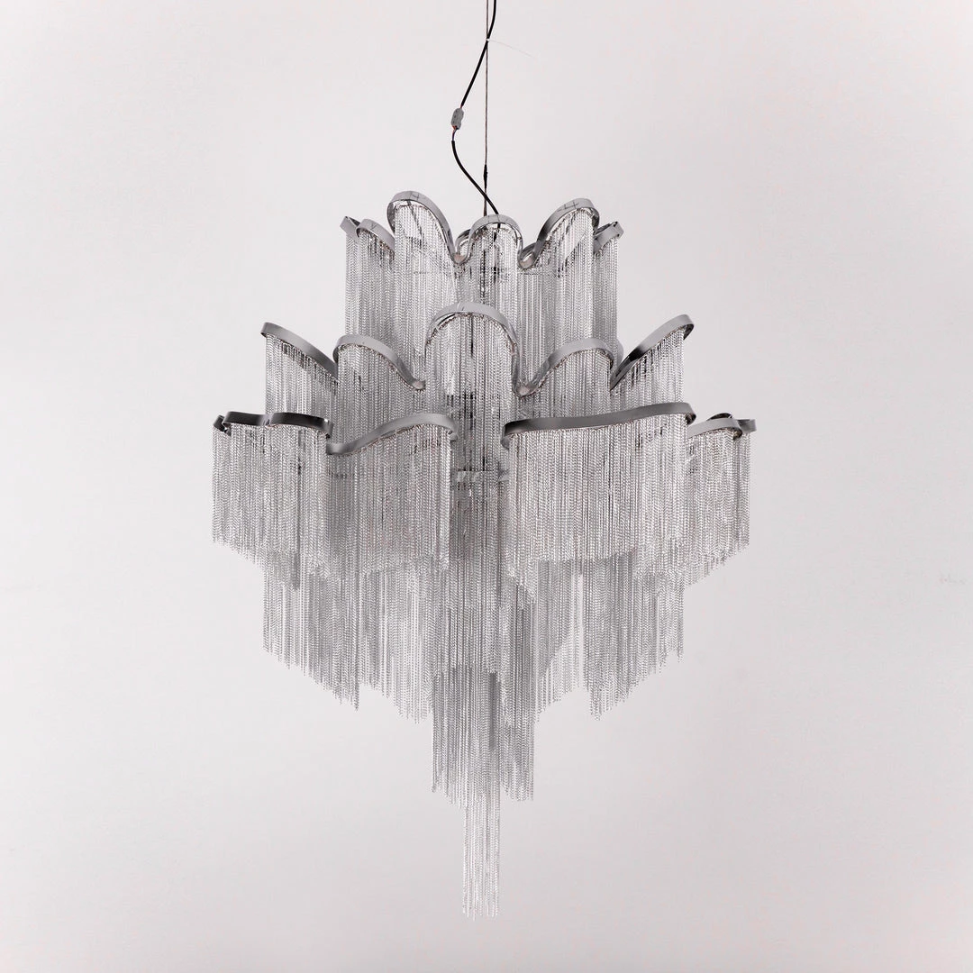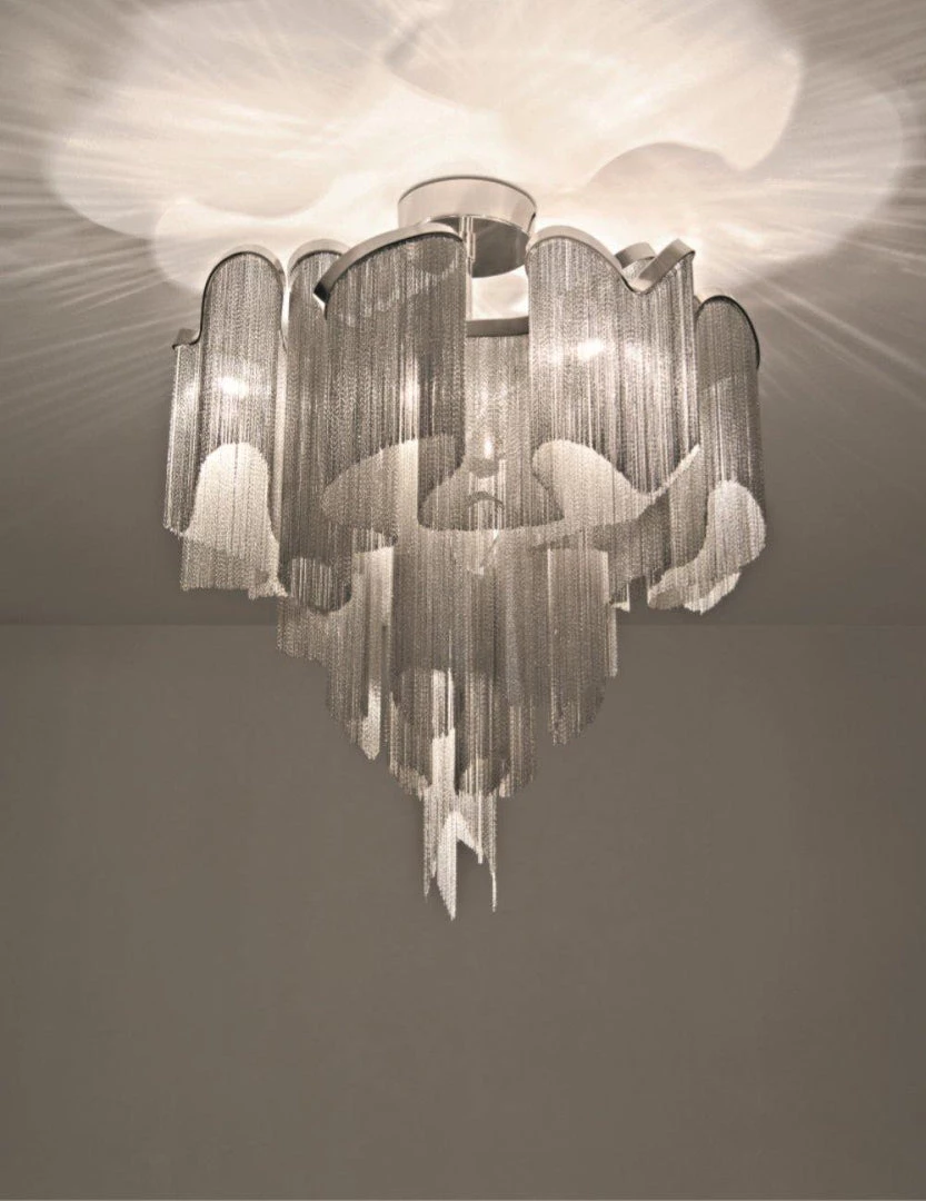 Another stunning design from Christian Lava, Stream is an impressive presence in any room. Like Christian’s other work for Terzani, Etoile, Stream’s design exploits the physical characteristics of the materials used to envelop a room in a unique, immersive light. Here, over seven kilometers of metal chain appear to flow down from the undulating, nickel-plated frame. These cascading tiers project a streaking, yet tranquil, shadow throughout the room. Design Christian Lava.