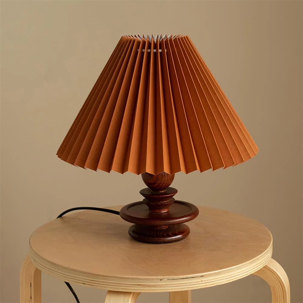 A table lamp, designed and produced in United States, 1960s. Features finely Ash wood of different species. Handcrafted Linen Pleated Shade. With beautiful original patina.