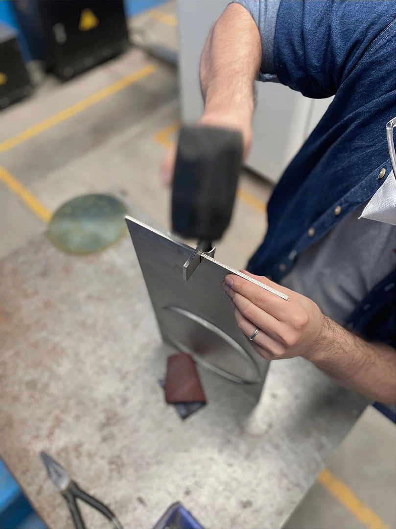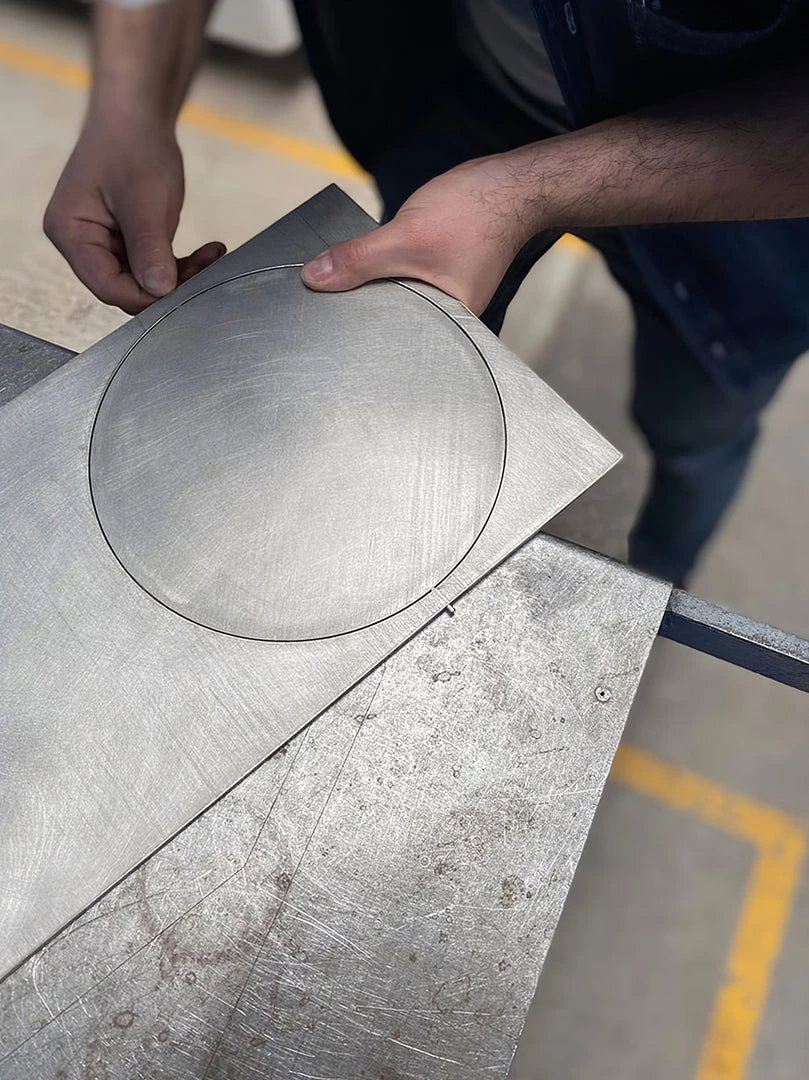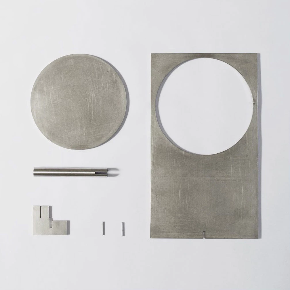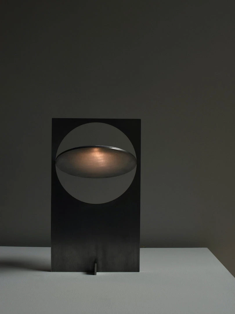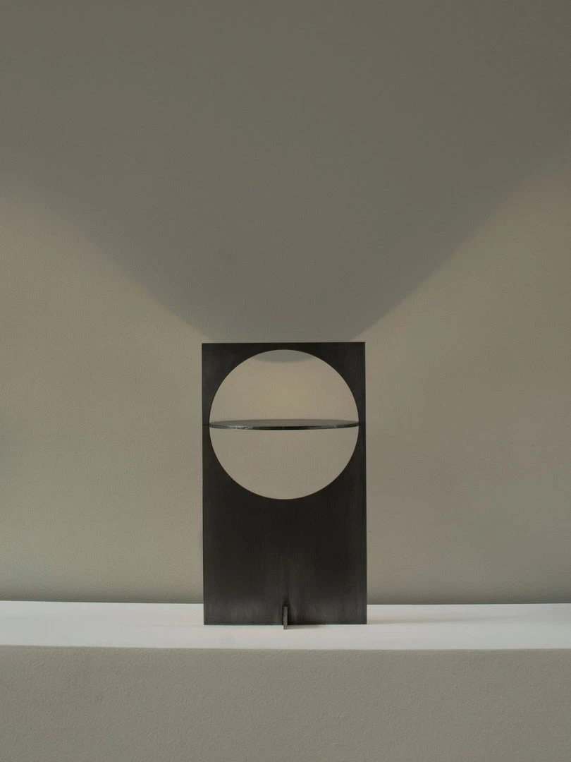 OBJ-01 is an understandable simple gesture, an object that needs no explanation. At a glance, it reveals its material, its manufacturing process, its function and its use. A plate of raw metal, cut by laser and assembled by hand with a rubber hammer and no welding joinery. Its size responds to the modulation and format of the material in its commercial standards. Pure geometric figures build the lighting fixture; a rectangle, a circle and a cylinder at the back which contains the LED light spot.The circle, when cut out, adopts the function of a screen and can rotate 360 degrees to direct the light at will.