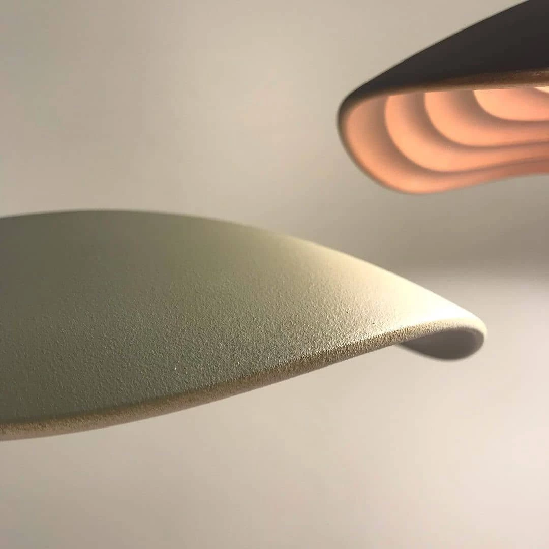 The concept of this lamp is based on a smooth head which draws a wavy shape on its perimeter, the clear contrast with the lamp inner part, that reminds us of the gentle and small oscillations that marine currents form on the Mediterranean coast.