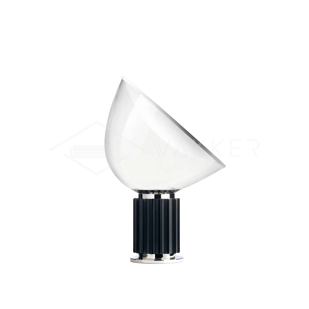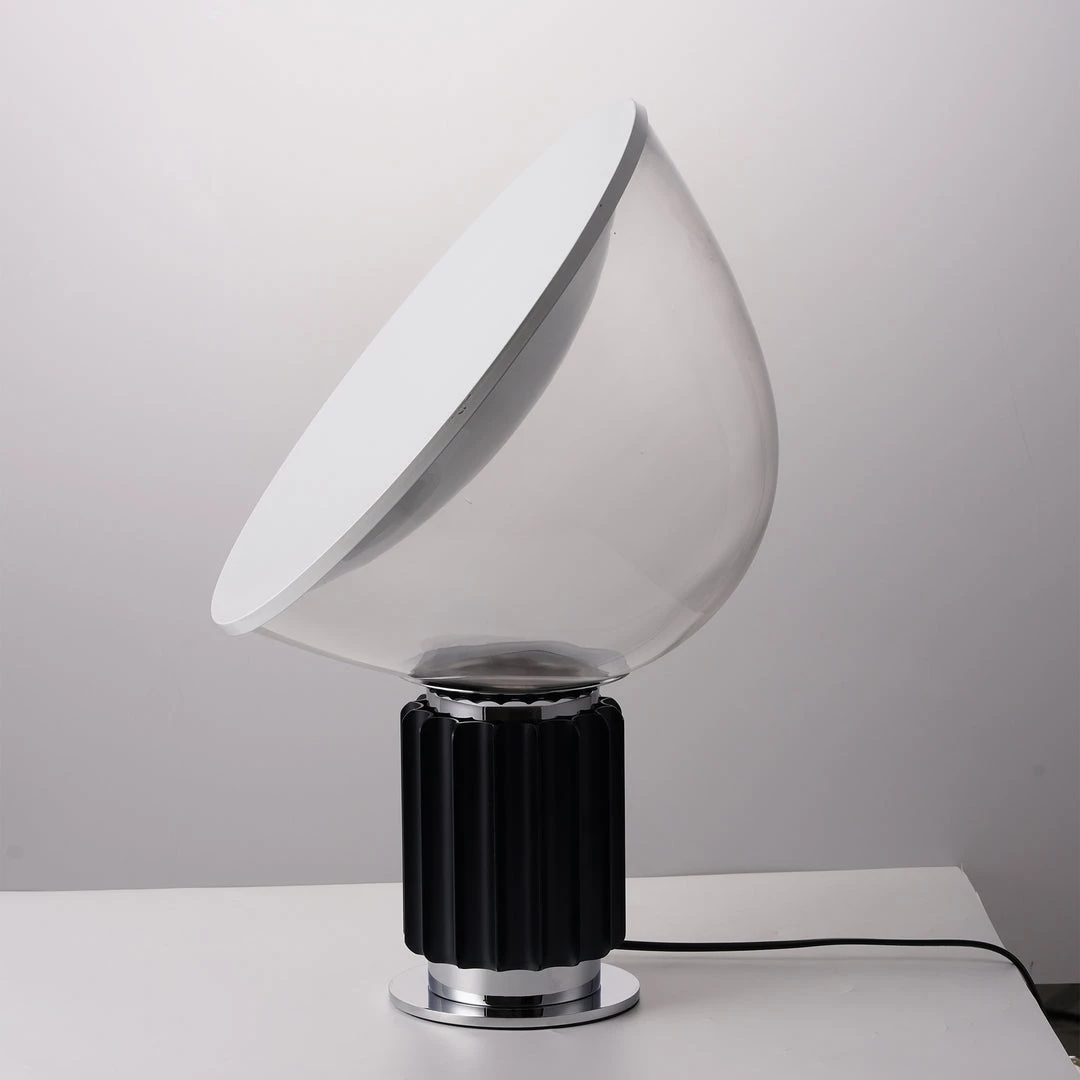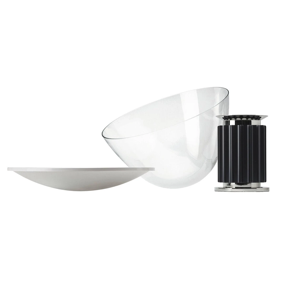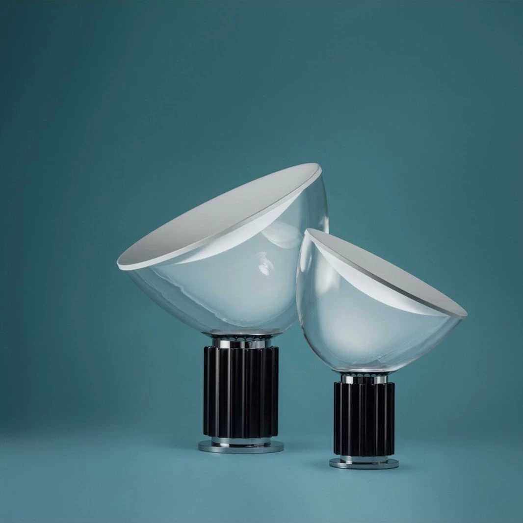 The Taccia which gives the illusion of an upside-down hanging lamp, is an inspiring example of that. This new, smaller version is approximately half the size of the original design created in1962. It has a painted aluminum reflector that is gloss white on the inside and matte white on the outside. The diffuser is transparent blown glass and can change direction. The body is available in matte black or naturally anodized extruded aluminum.