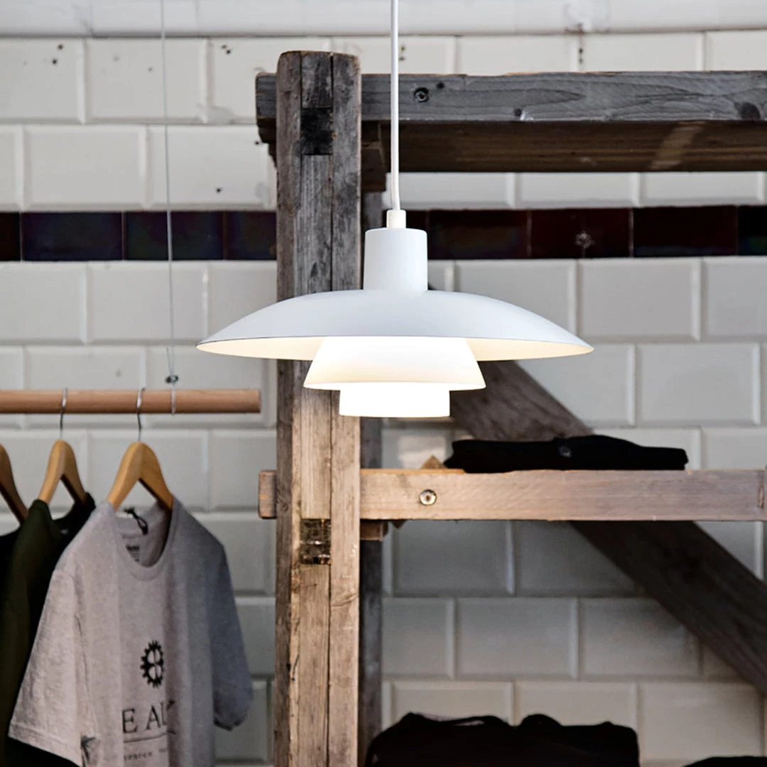 Its design is based on the principle of a system of three blades that generate reflective shade that directs light downward without glare.It is built in aluminum painted white to ensure uniform distribution of light.