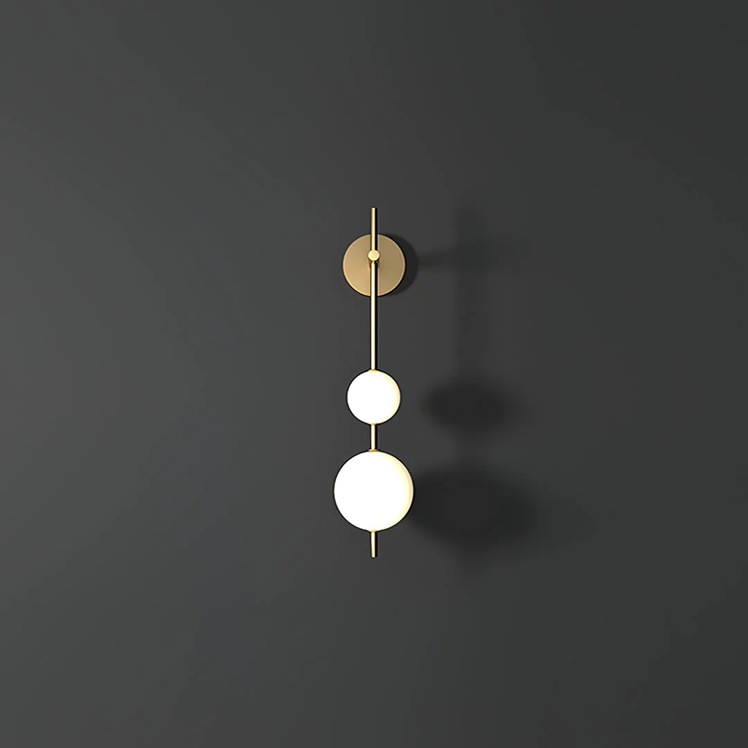 Add stylish lighting to any space with this Vertical Glass Globe Wall Lamp . This sconce makes a welcome addition to your indoor lighting. It features a fixed wall-mounted design with a metal body in a gold finish for a glam, minimalist look. The spherical glass shades in a matte white finish diffuse light with a warm, cozy glow, while the dimmable light setting allows you to control the right level of light. Just fix it in your bedroom, hallway, study or next to your bathroom mirror for effective lighting.