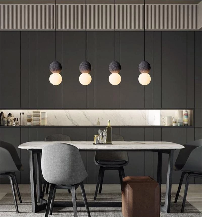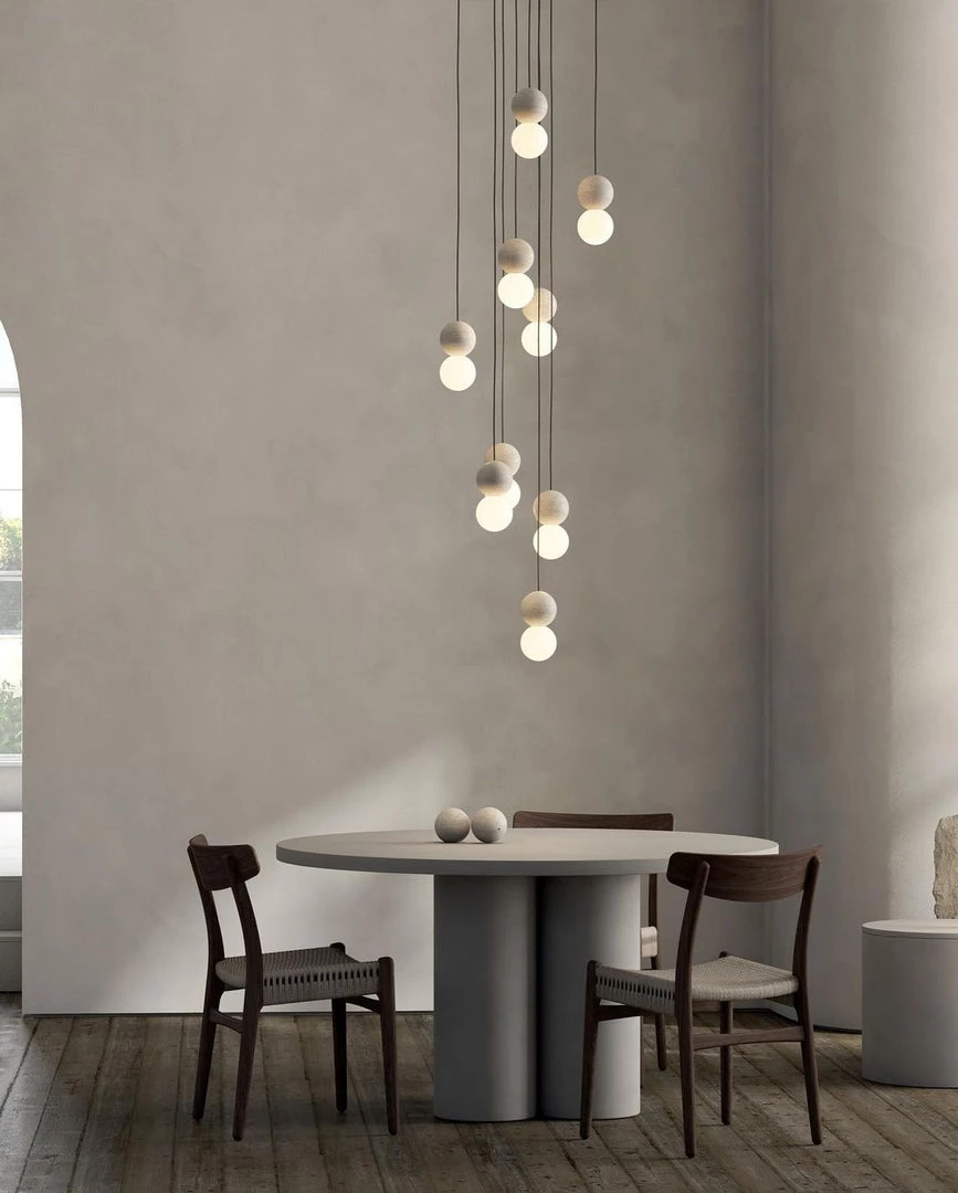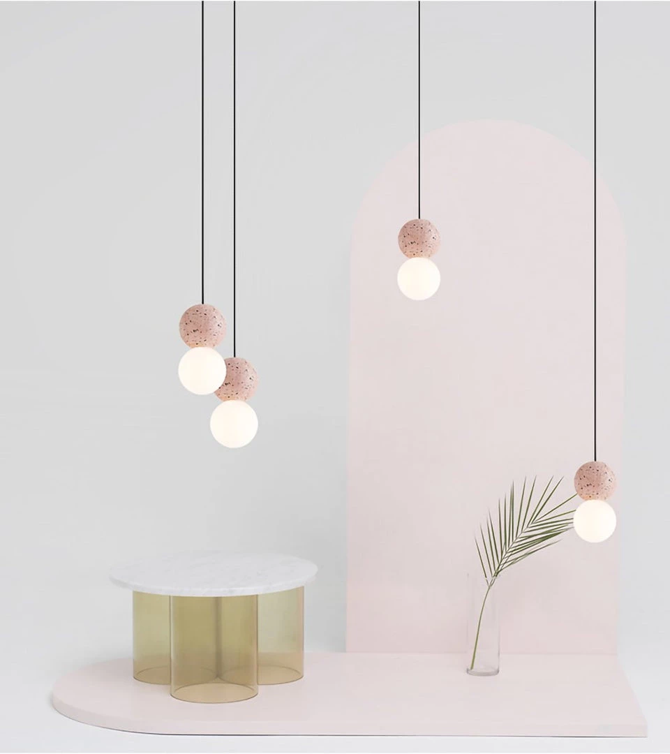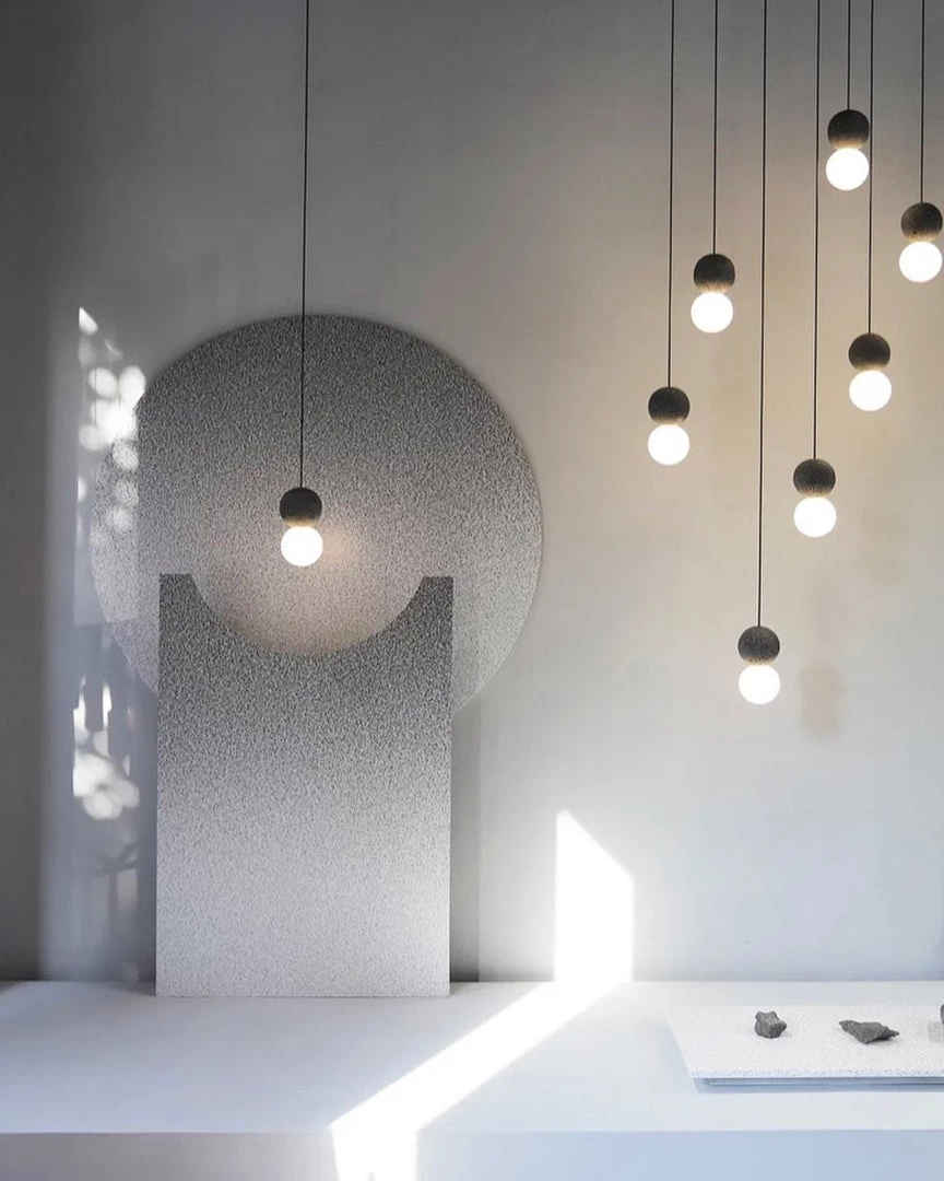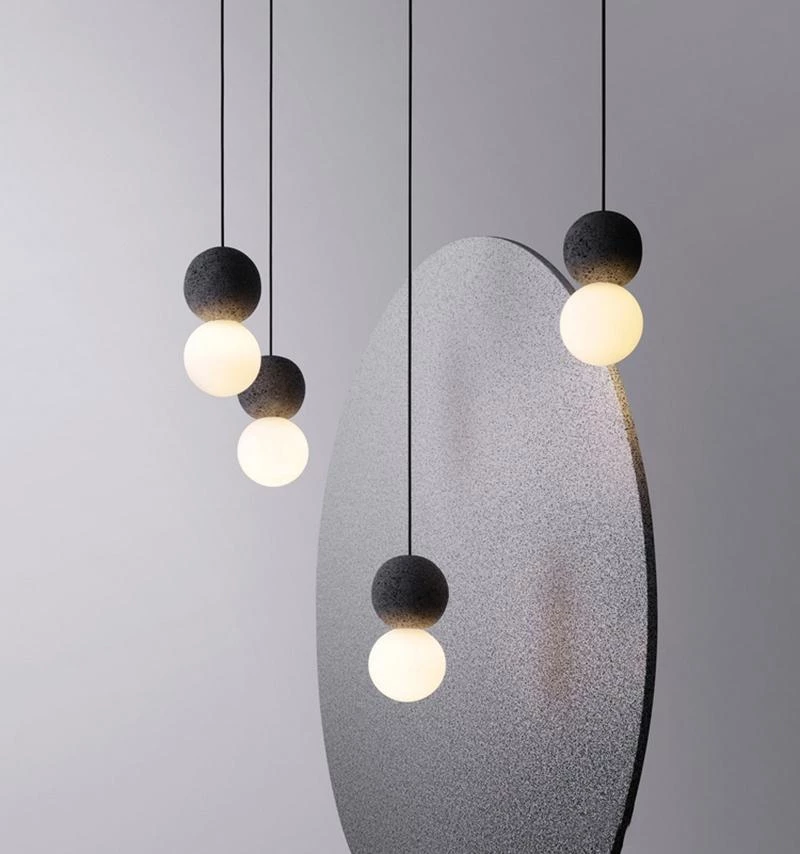 Geometry in its purest form. Origo embodies opposite essences mirroring volcanic rock and an opal glass diffuser. An exploration of interaction, light shining onto the texture of the volcanic rock, revealing its relief and contour. Sober and logical, both materials create a relationship between light and composition. Balance in its essence, lightness and heaviness expressed through a timeless piece. Spheres work as a double geometry, mirroring positive and negative. Reinforce the fundamental relationship between light and shadows.