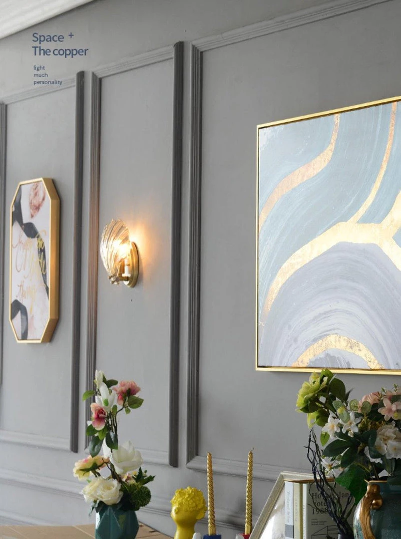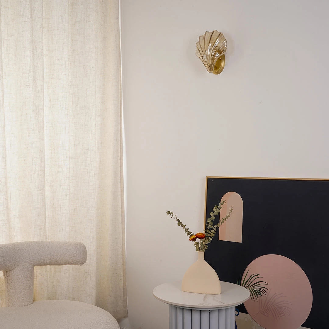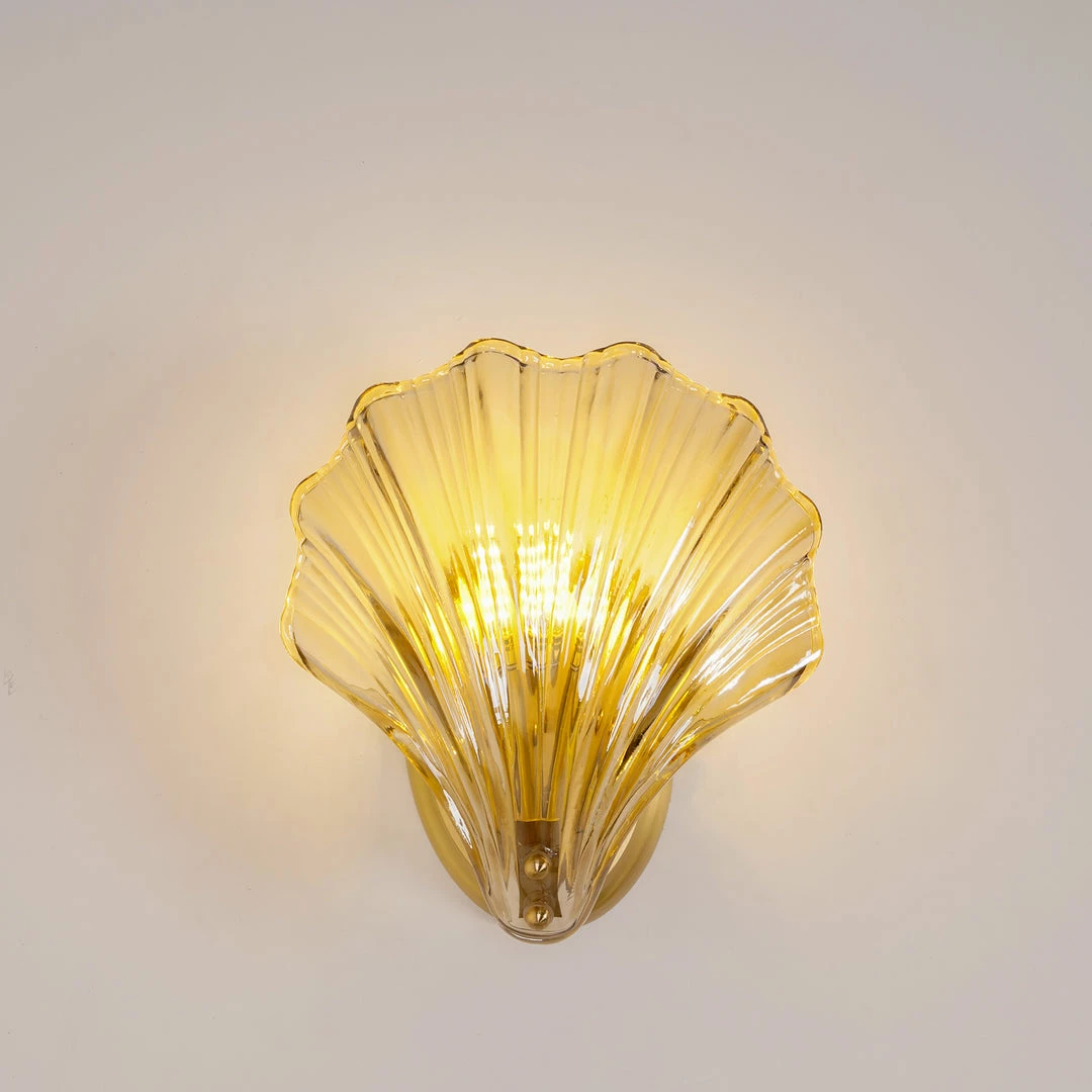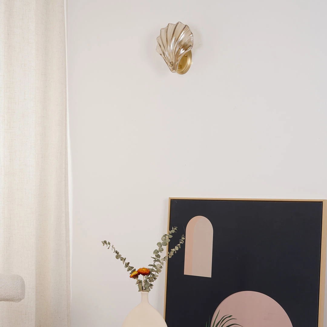 Wonderful One brass wall lamps or sconces. The lamps have the form of a shell and they are in very good condition.