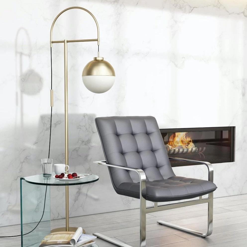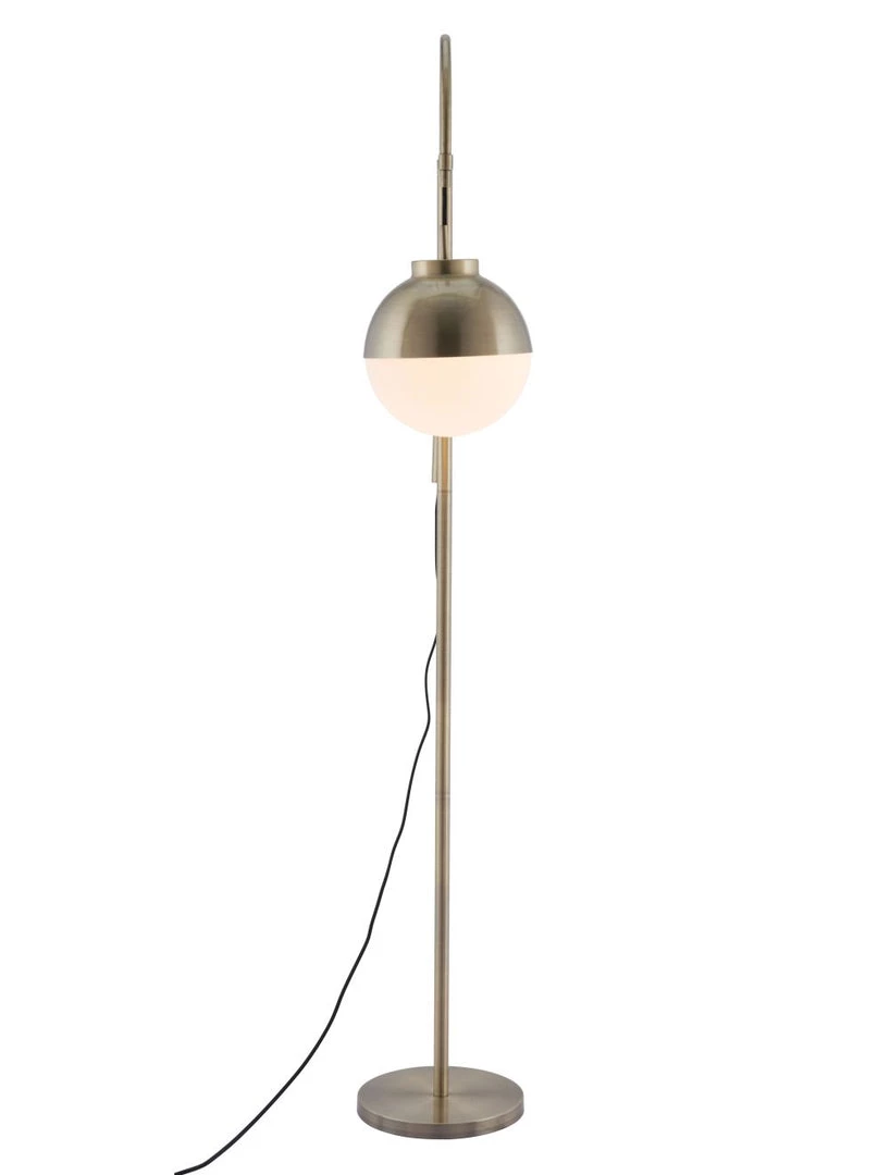 This posh arc floor lamp with its iconic mid-century sensibility will set a modern mood wherever you place it. Frosted glass sphere combines with soft, brushed brass to double-down on contemporary design.